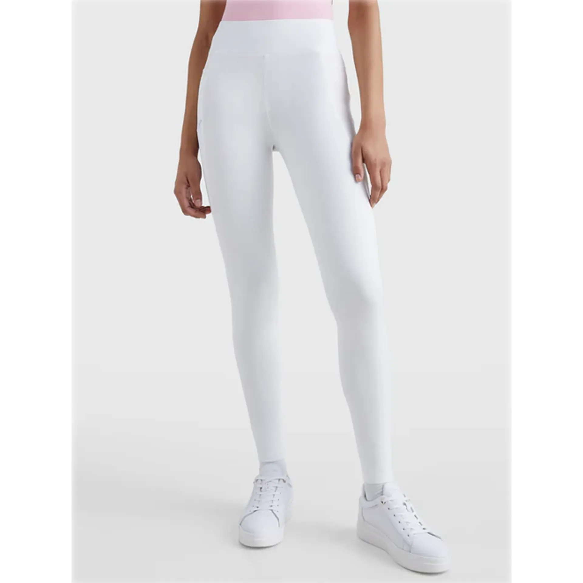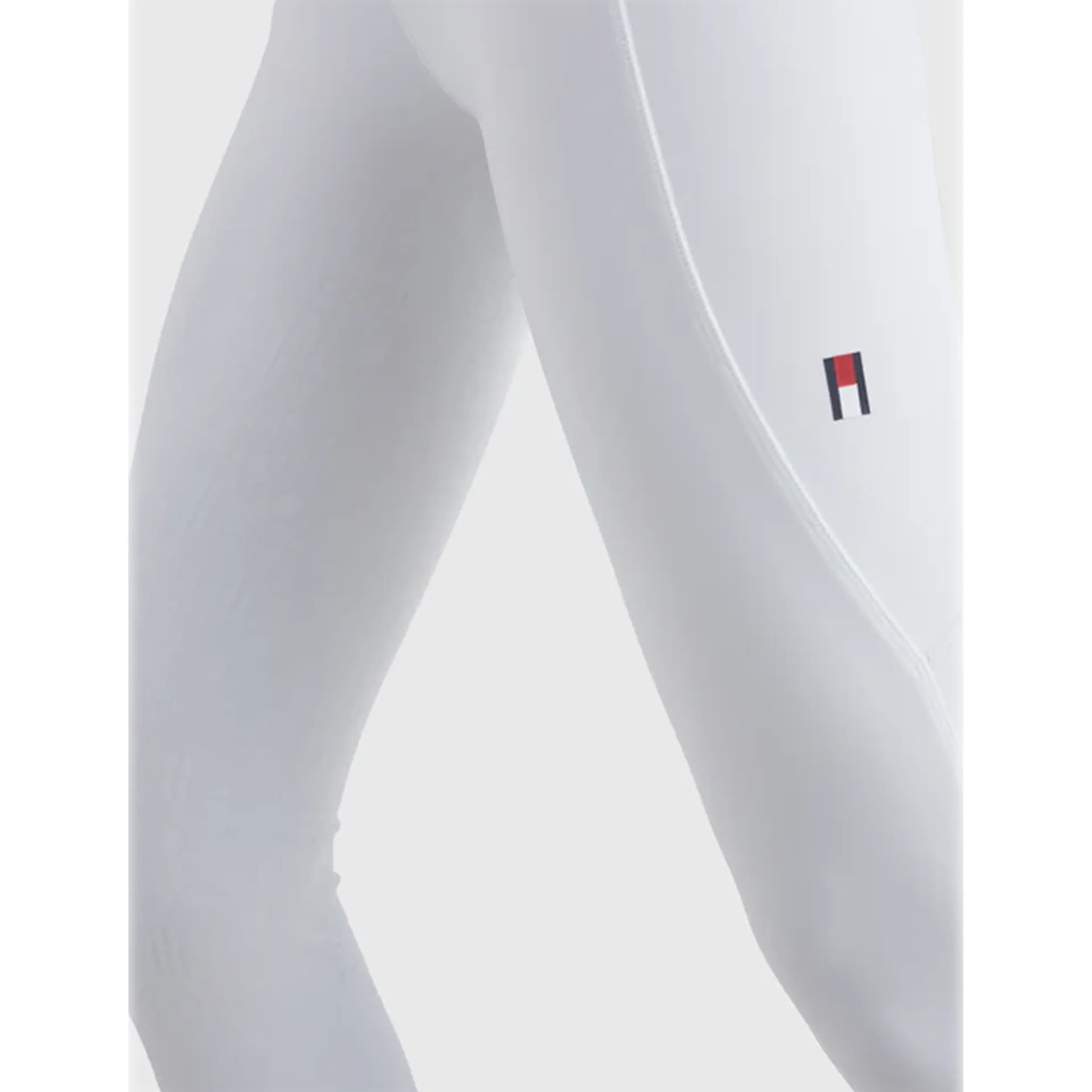 Full seat silicone grip riding leggings with a wide, supportive waistband, printed with Tommy lettering. Featuring a smartphone pocket with concealed zip on the right thigh and a jeans style cut on the back.