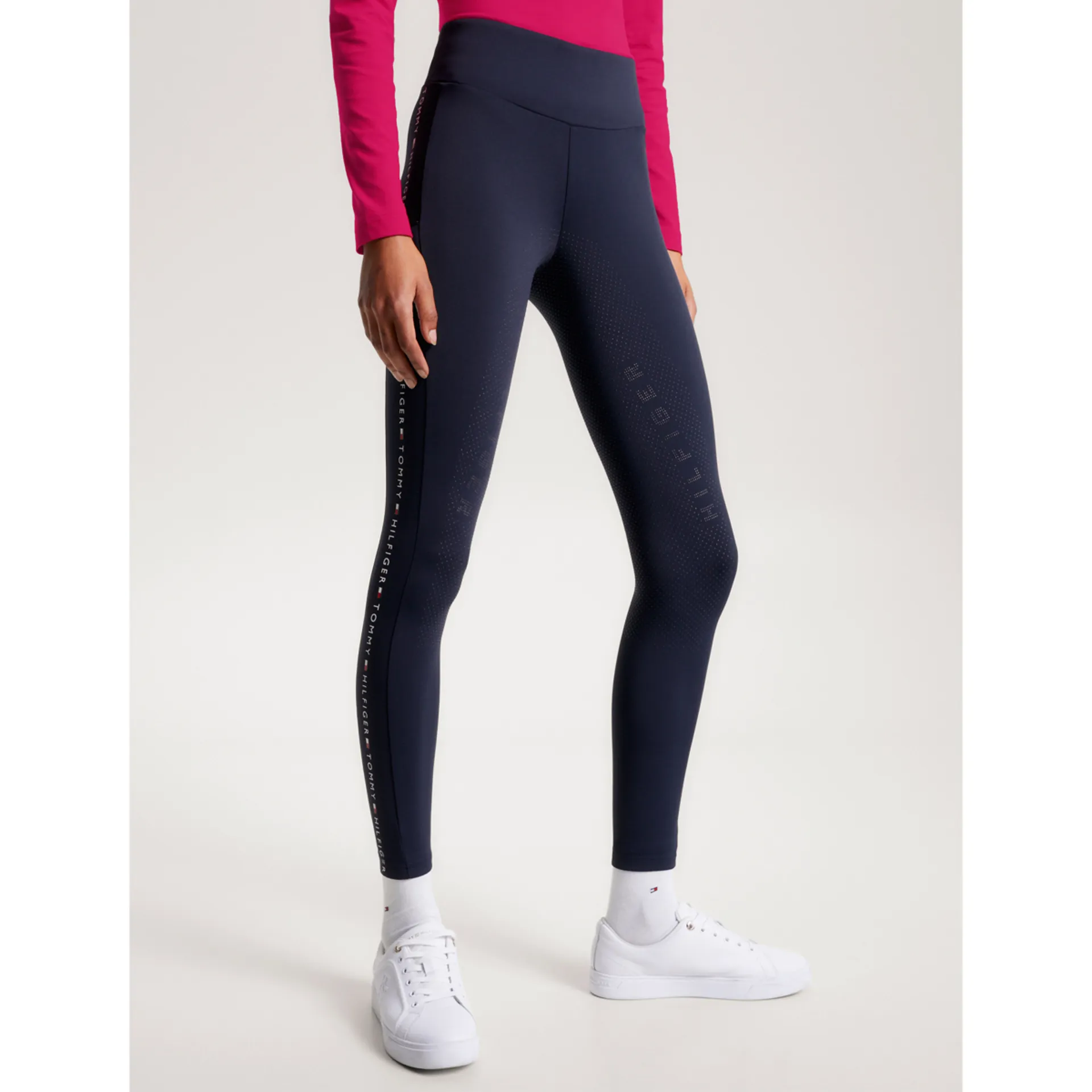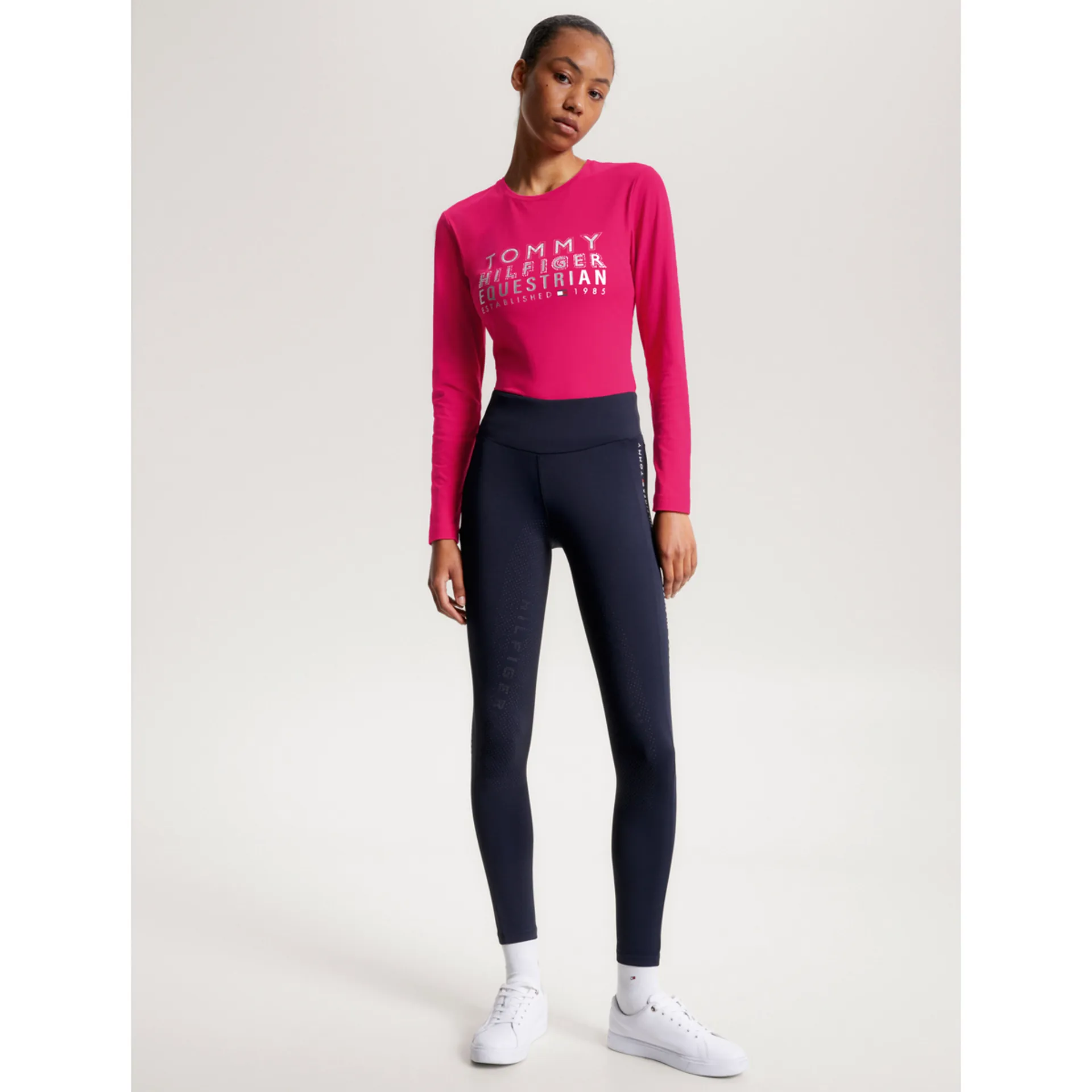 Our perfect Rome technical riding leggings provide maximum stretchability and comfort in and out of the saddle. Featuring a Tommy Hilfiger RIDE branded side seam for a stylish look in the saddle, these leggings come with a silicone full seat grip and handy cell phone pocket on the right thigh. A Tommy Hilfiger logo inside the waistband and at the small of the back completes the look.