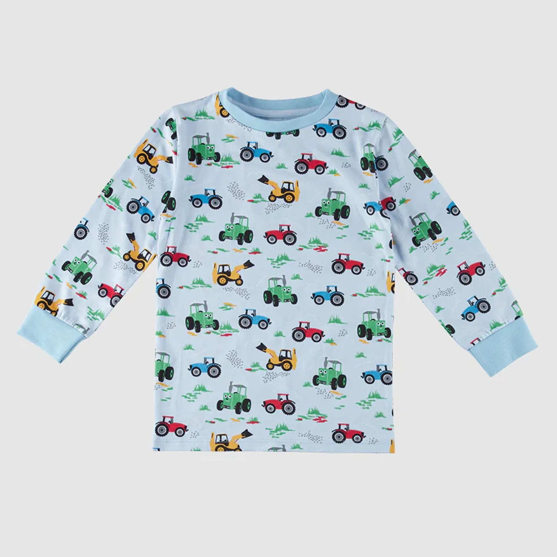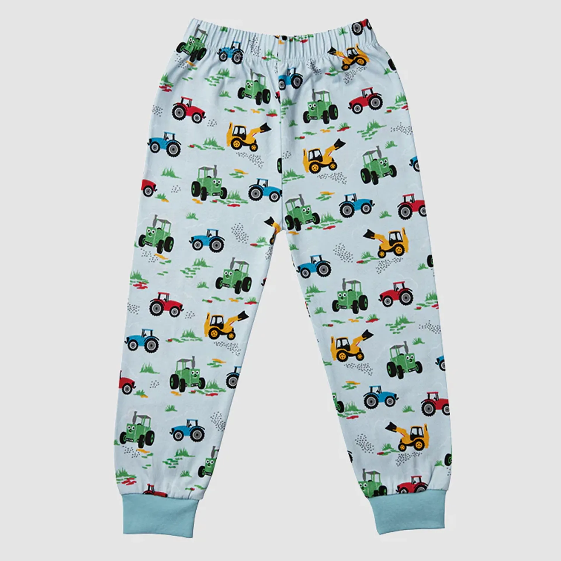 Tractor Ted and his Machine friends are ready to help your little one get a good night's sleep. The soft cotton pale blue matching top and bottom pyjamas feature Tractor Ted and lots of different machines. With ribbed cuffs and with an elasticated waist for comfort.
