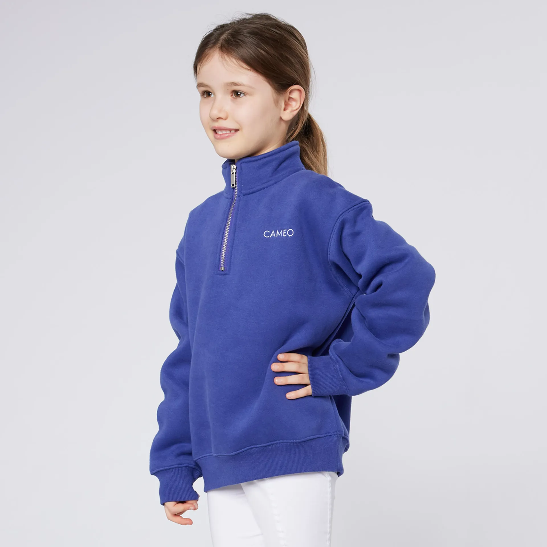 The perfect sweatshirt with stand up collar and quarter zip complete with iconic Cameo branding. Ideal for slipping on to keep warm at the yard, a trip to the gym or just to chill out at home. Looser fit style and brushed lining for ultimate comfort!