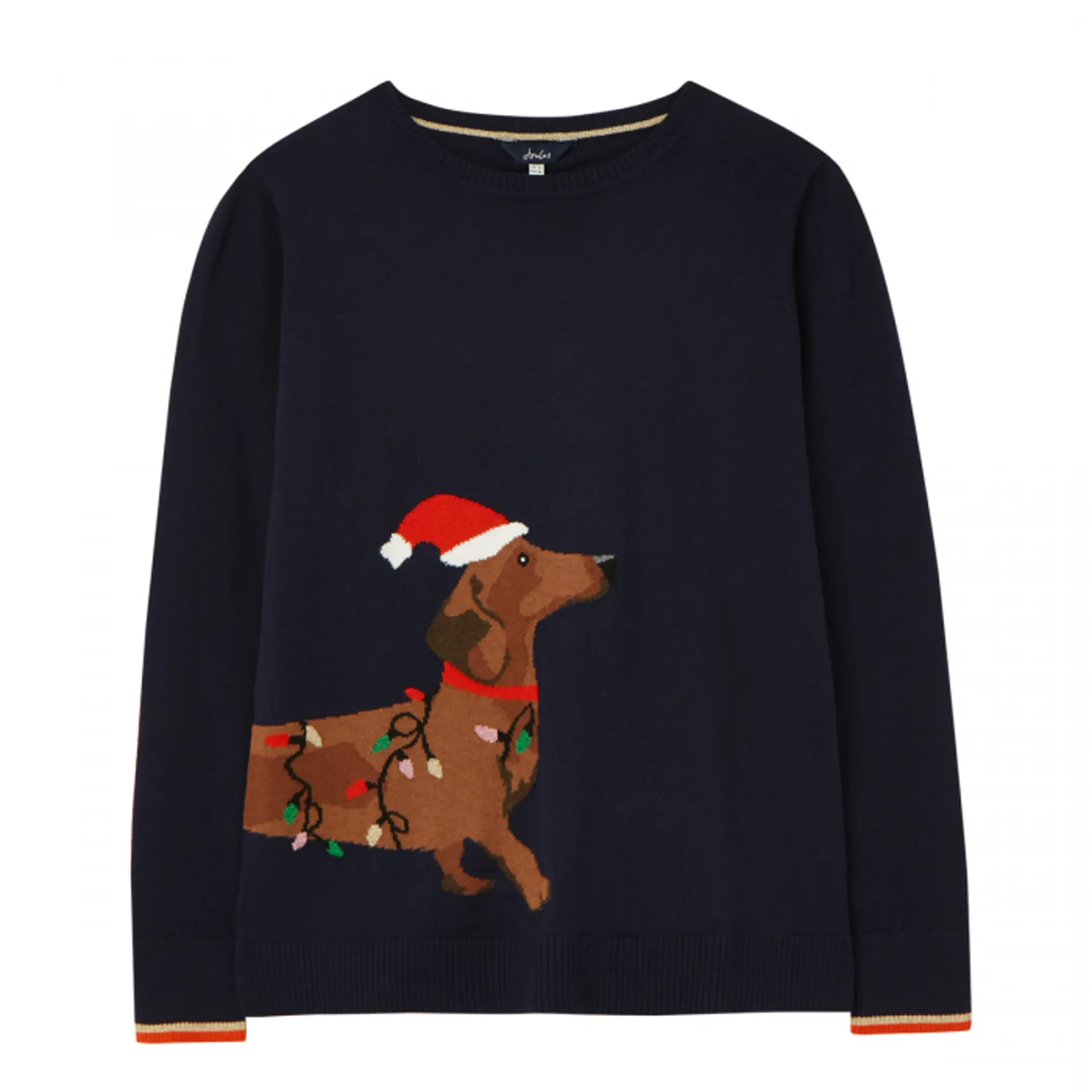 Question(s) answered about Joules Festive Crew Neck Intarsia Block Jumper - Navy Dog