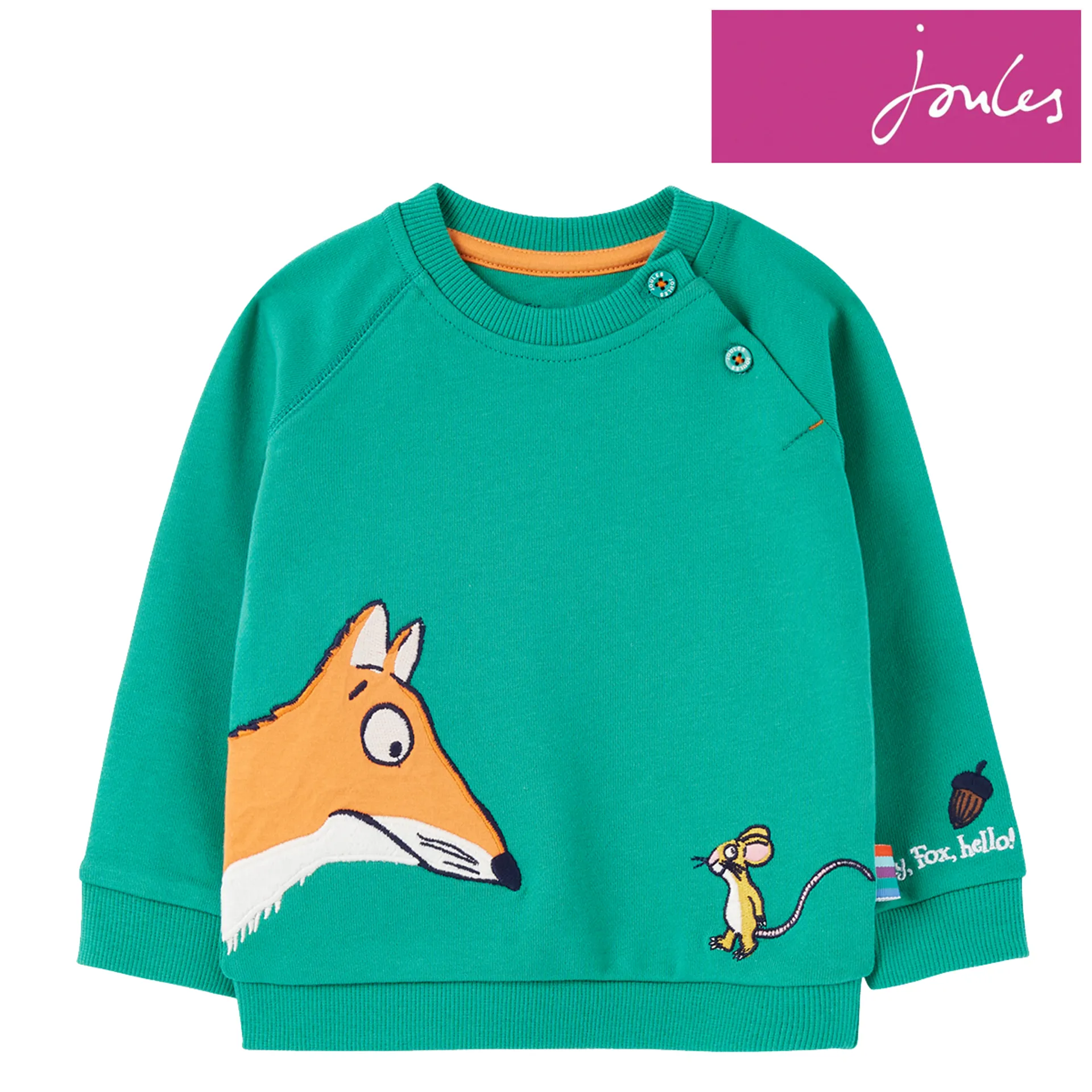 Question(s) answered about Joules Gruffalo Harvey Raglan Sweatshirt - Fox And Mouse