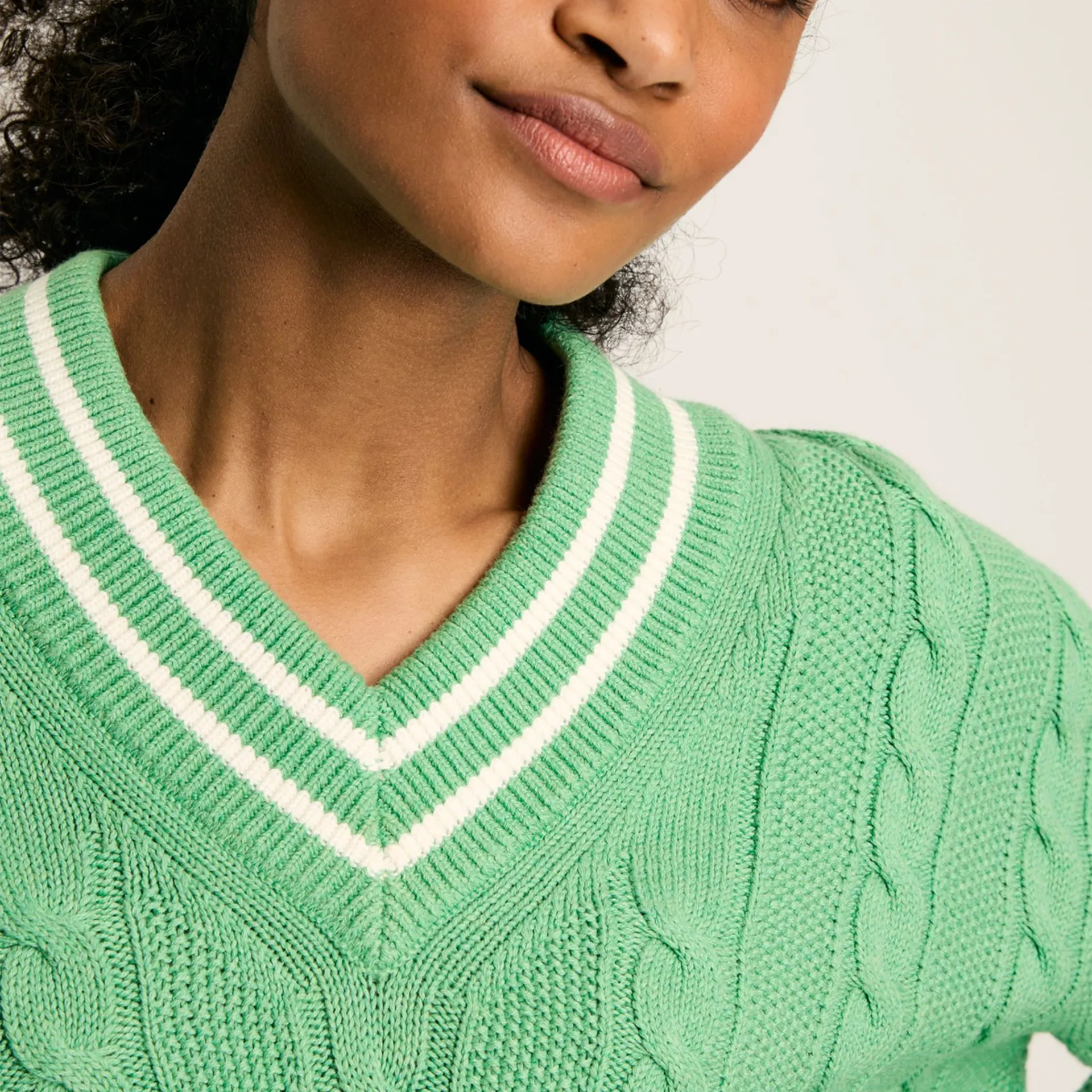 Question(s) answered about Joules Ladies Dibbly Cable Knit Cricket Jumper - Green
