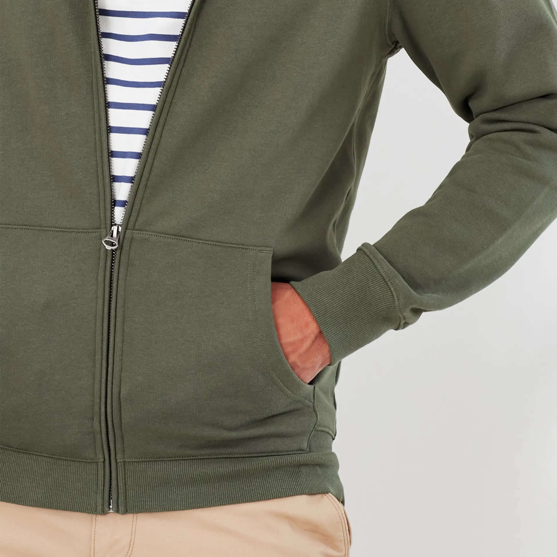 For those days when you need an extra layer, this zipped hooded sweatshirt is something every man needs in his wardrobe. The soft touch cotton has been garment dyed for a slight washed look and has two front pockets for keeping your hands cosy too. A ribbed hem and cuffs give this hoodie a comfy fit that you can always count on. Part of our Family Collection, it comes in matching styles for women and little ones.