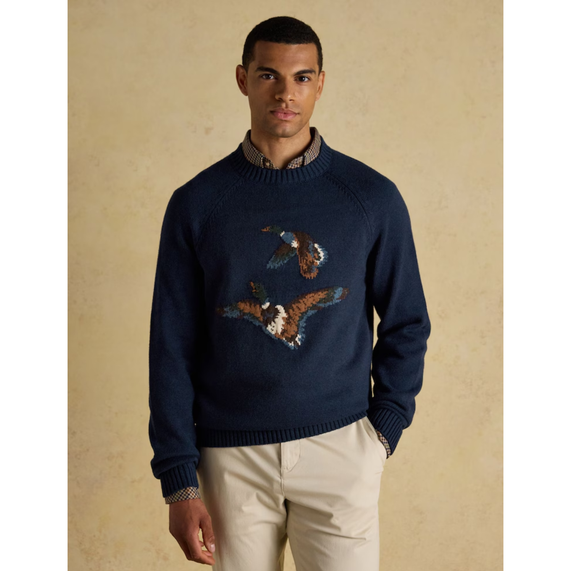 Question(s) asked regarding Joules Men's Duck Intarsia Jumper - Navy