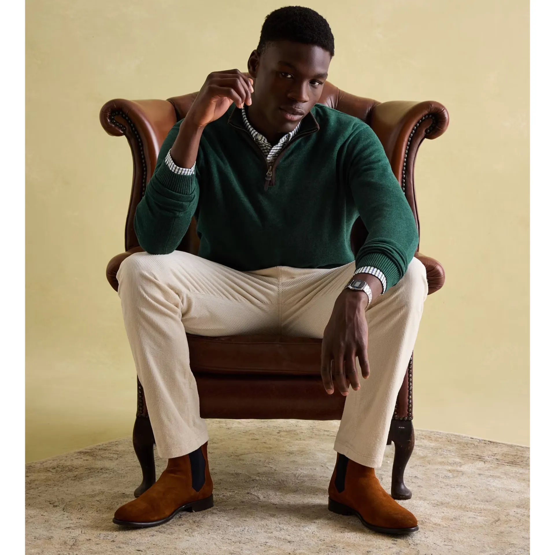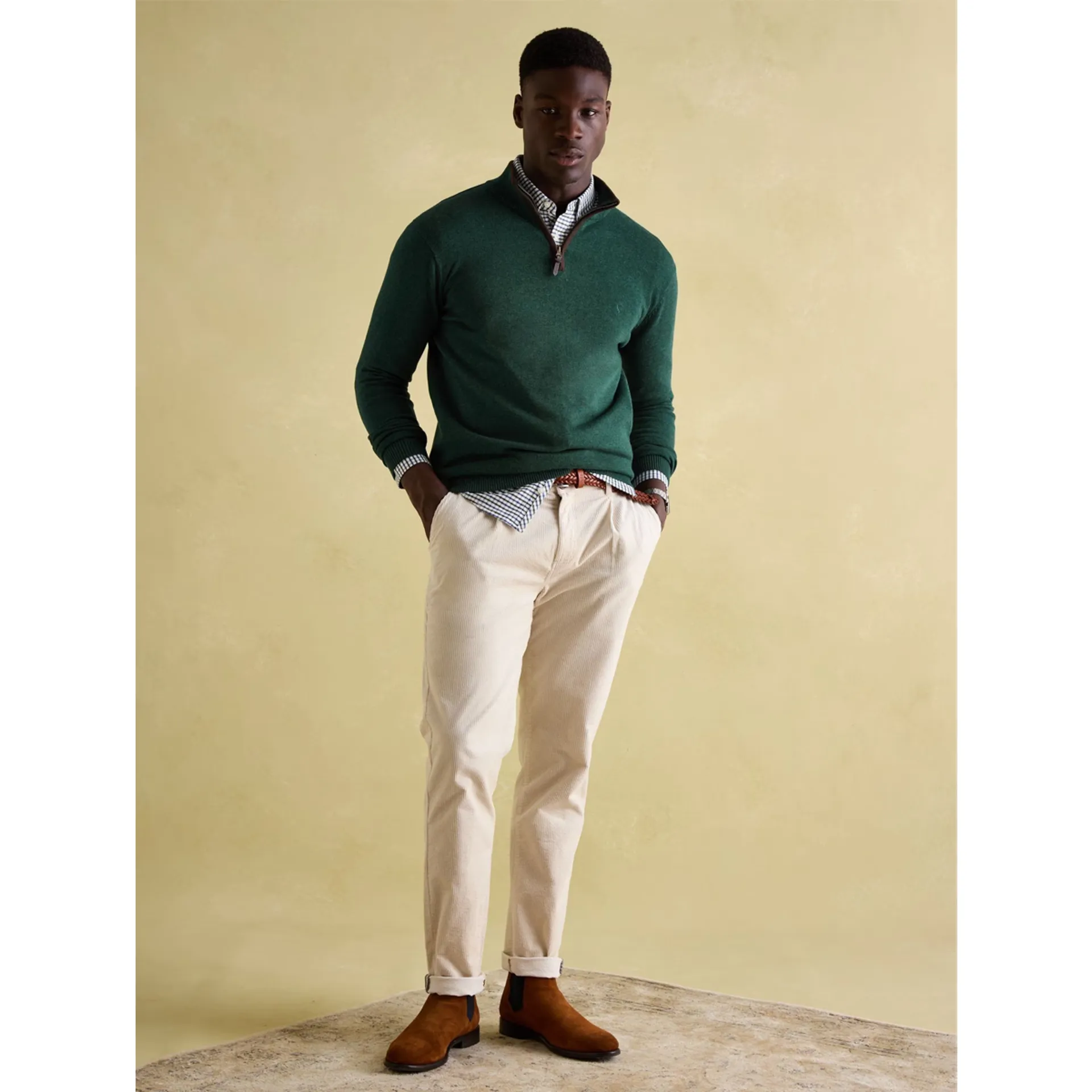 One of our best-loved men's styles, this quarter zip jumper is crafted from soft yet substantial cotton and is comfy enough for layering and yet dapper enough to wear on its own.