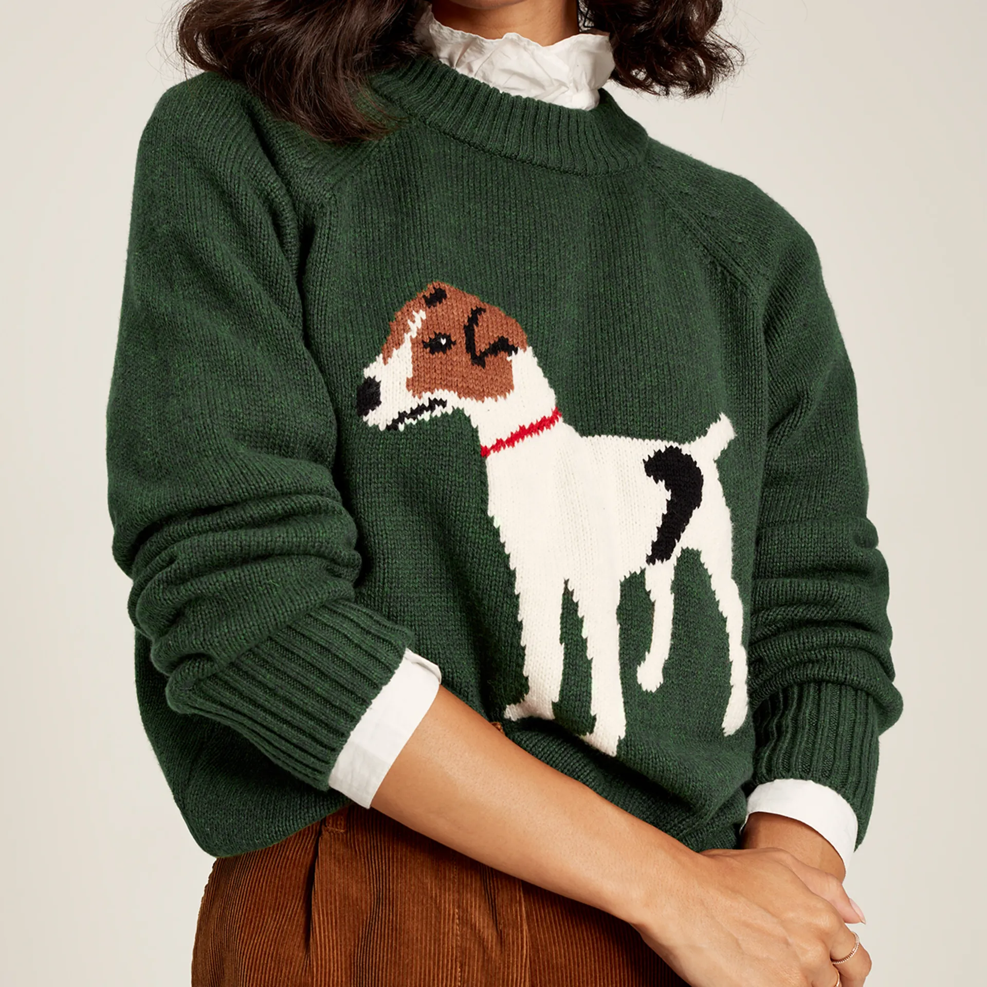 Long have we adored adding a touch of personality to outfits through our intarsia knitwear. And for our newest addition, we're bringing it back to the countryside. Margot is the perfect layer, crafted from a cotton blend with long, raglan sleeves, a classic fit and a crew neck. The intarsia artwork is rather fetching and a great way to welcome some character into your wardrobe. Layer under tweed blazers or quilted coats to elevate your countryside attire.