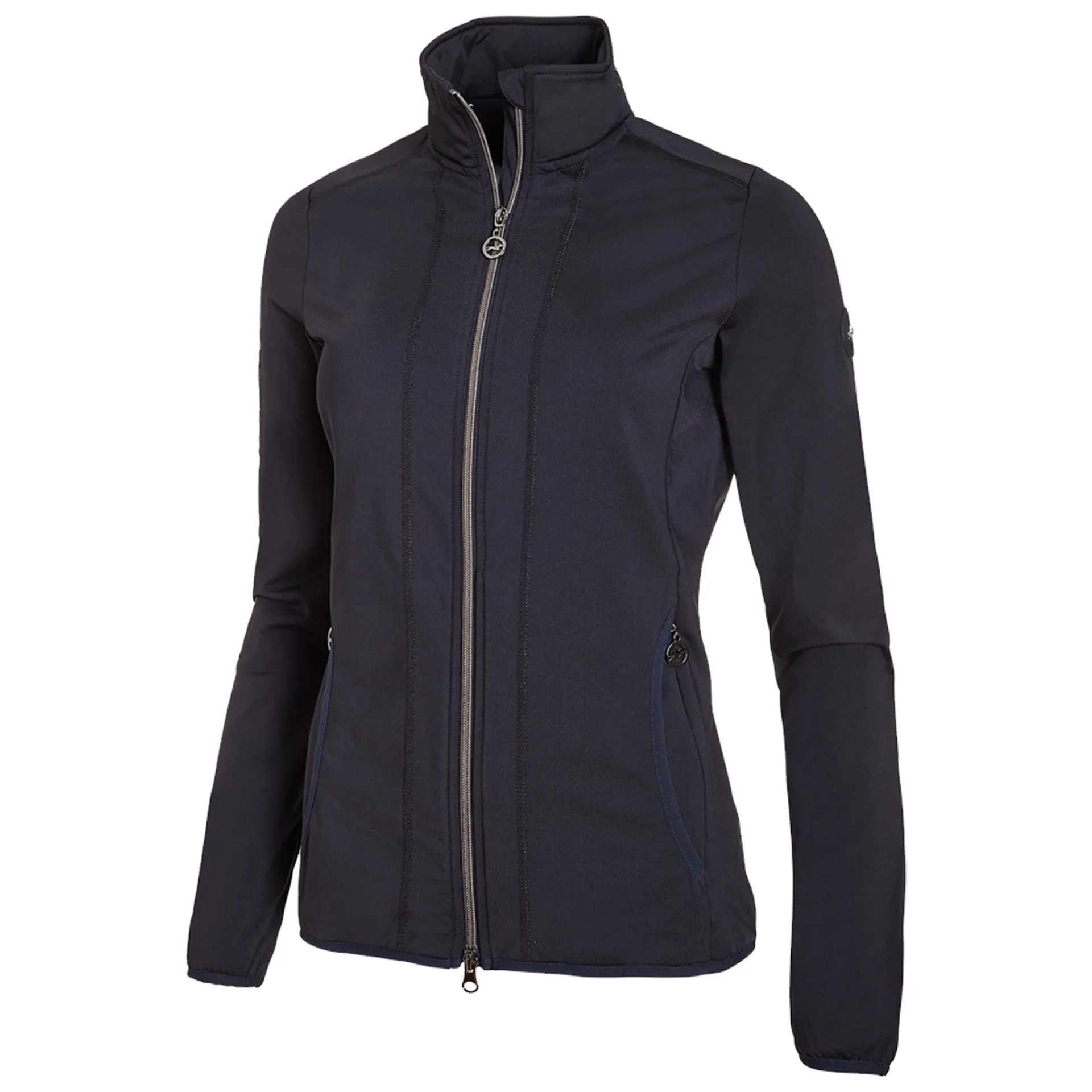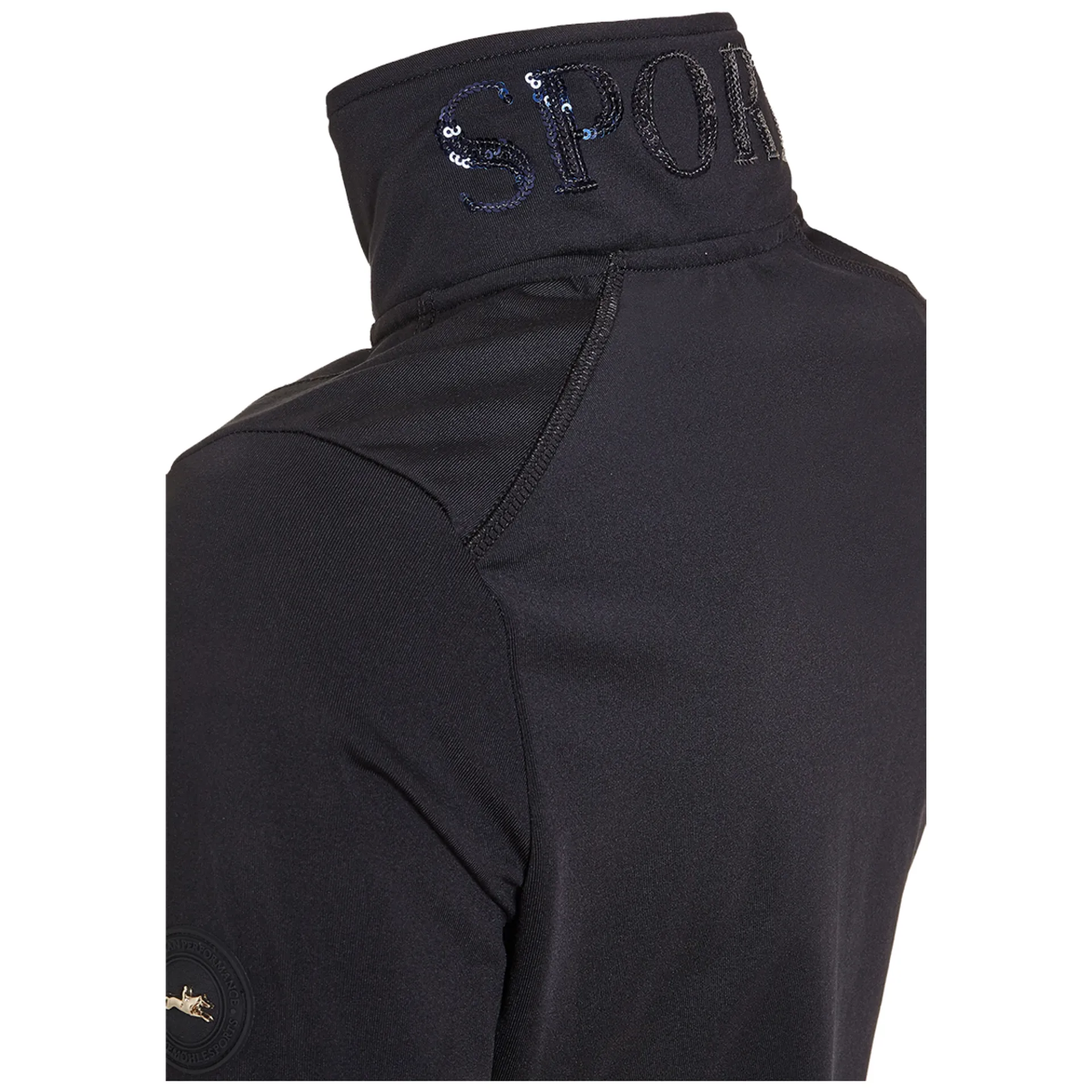 The jacket Rabea Style from Schockemöhle Sports is a cosy, functional jacket with elegant sequin embroidery. Held in elegant midnight blue, the decorative seams with Lurex overlock are perfectly accentuated. The jacket is breathable, quick-drying and with double pockets and 2-way zipper a practical as well as stylish companion for the next ride.