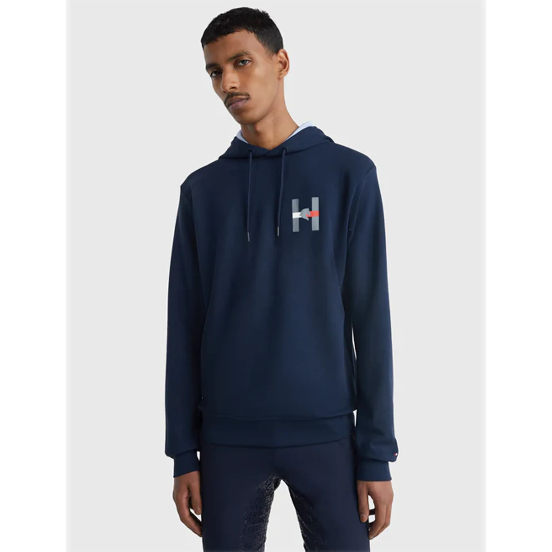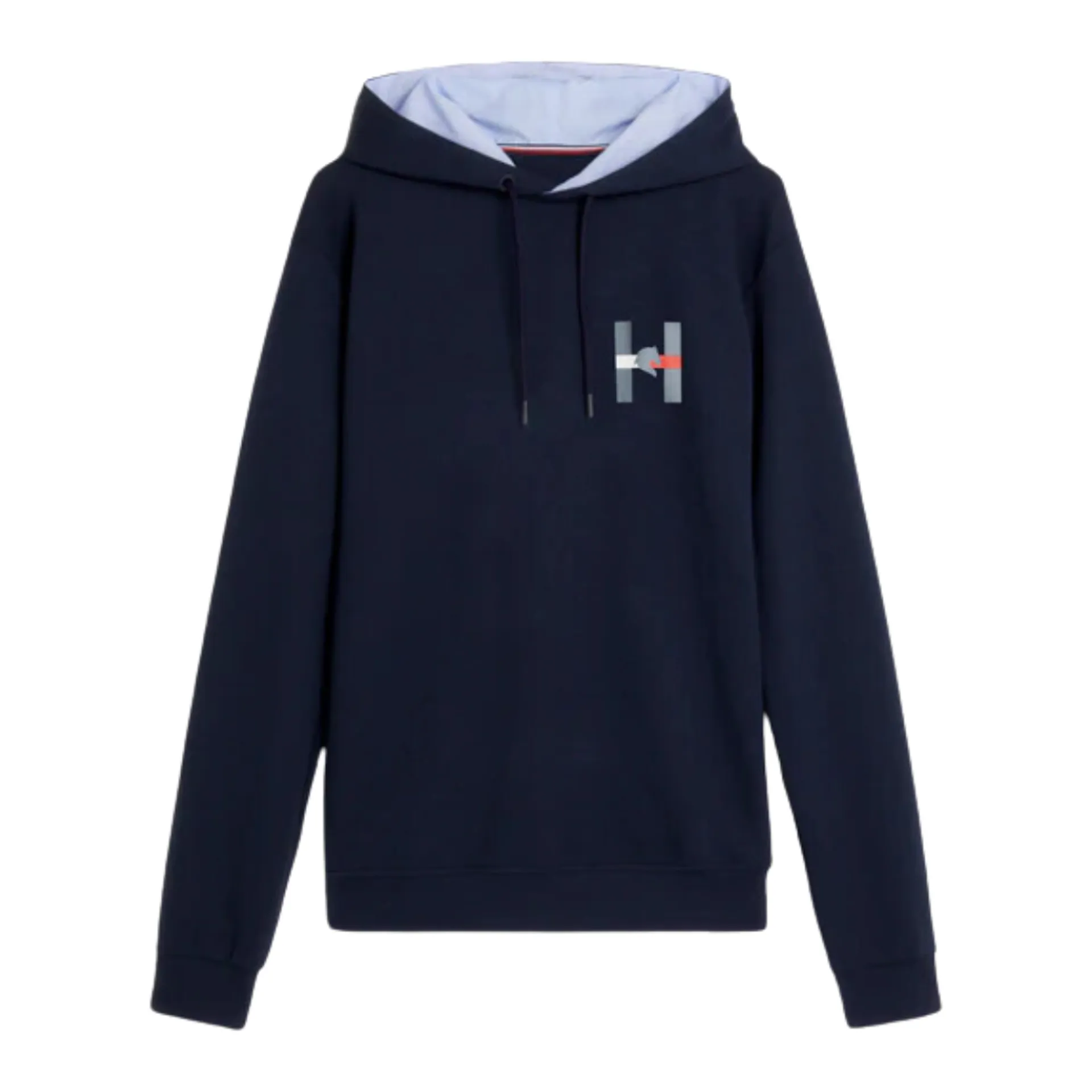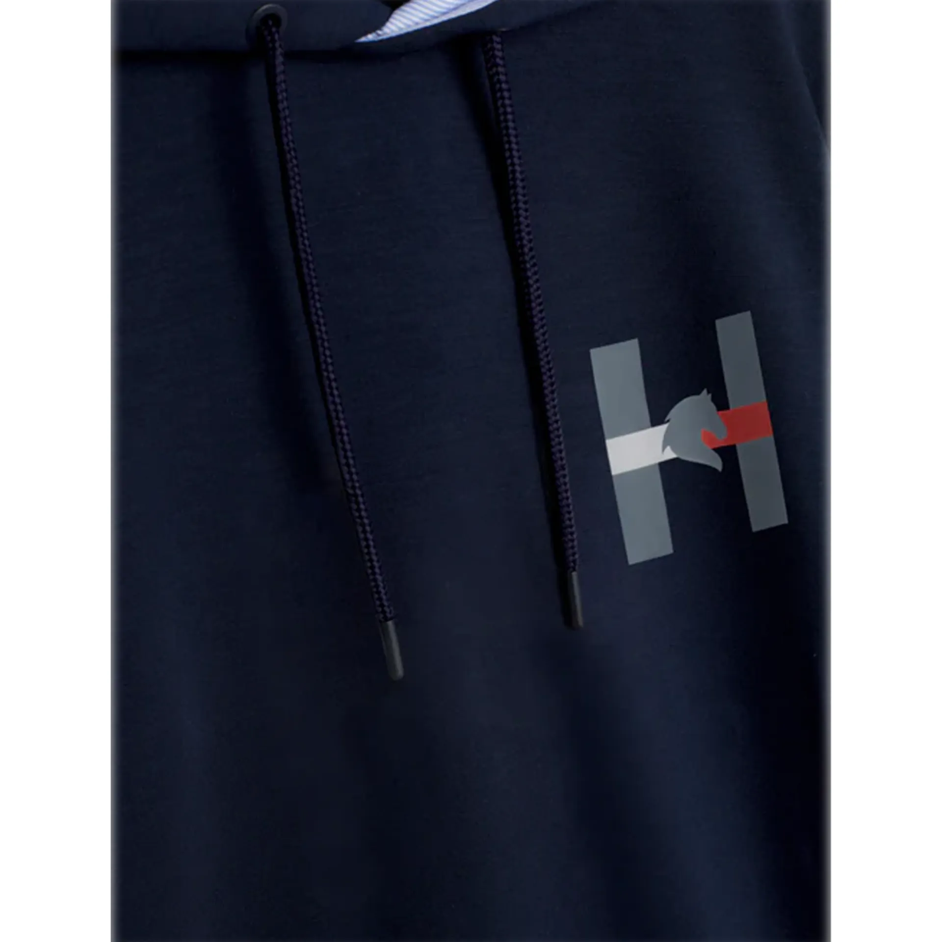 Hoodie with ribbed waist and cuffs. Hood lined inside in Tommy Ithaca Stripe featuring drawstrings with soft rubber cuffs, Hilfiger embroidery over the hood and H Horse graphic print on the chest.