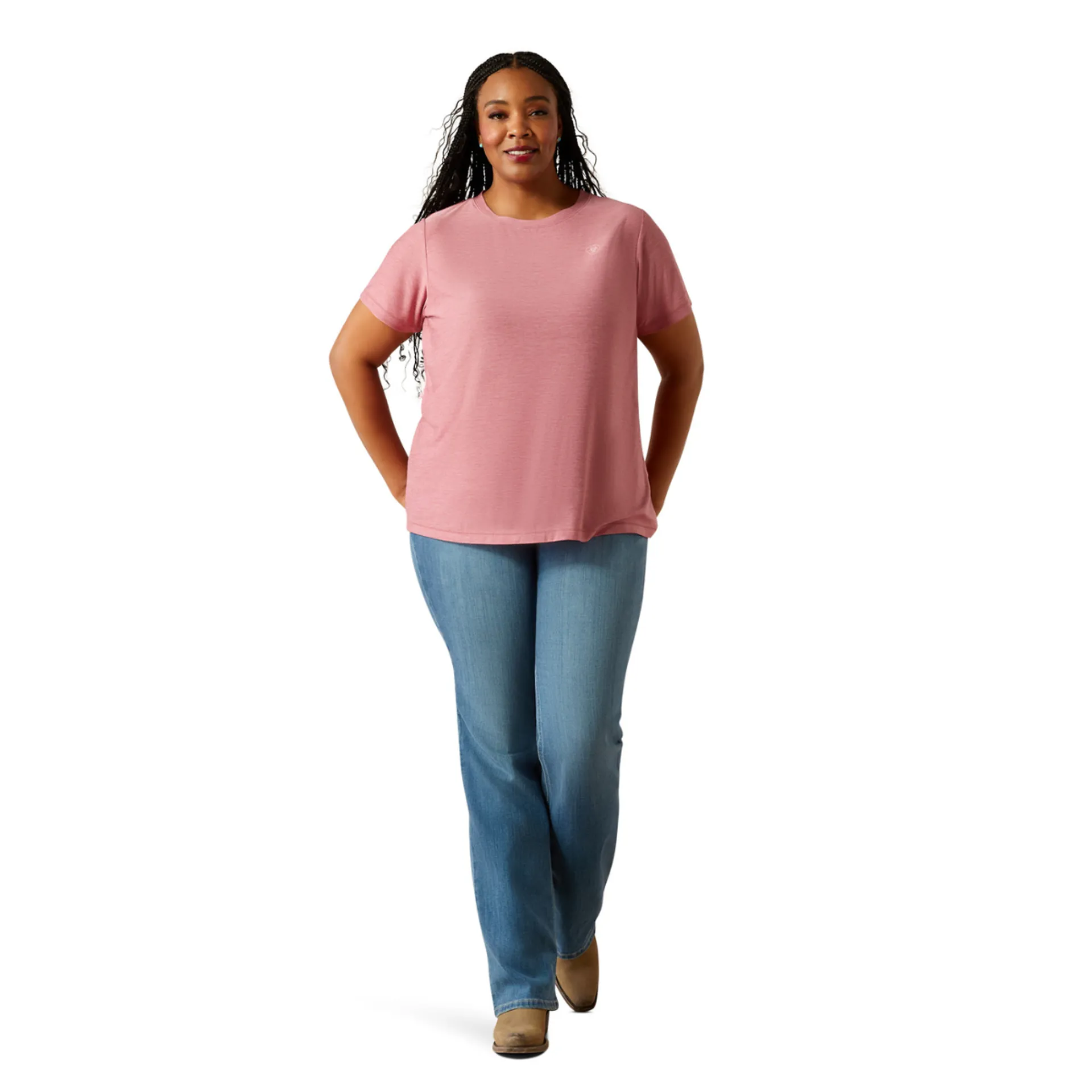 Your go-to tee for hot days. Lightweight, breathable, and sweat-wicking, it has a roomy, relaxed fit and an Ariat logo on the back. Wear it at the yard, in the gym, or around town - it does it all.