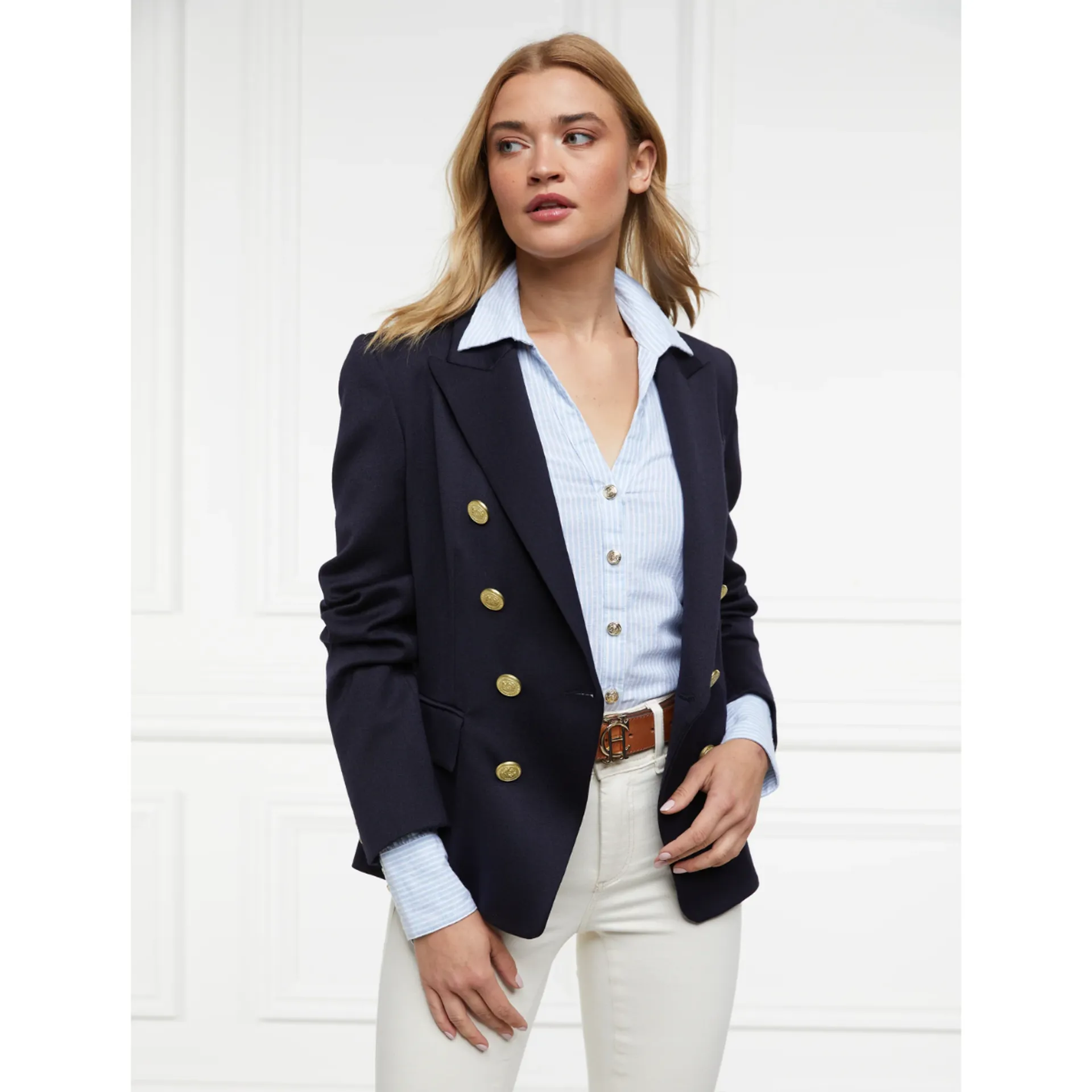 Question(s) asked regarding Holland Cooper Classic V-Neck Blouse - Azure Stripe