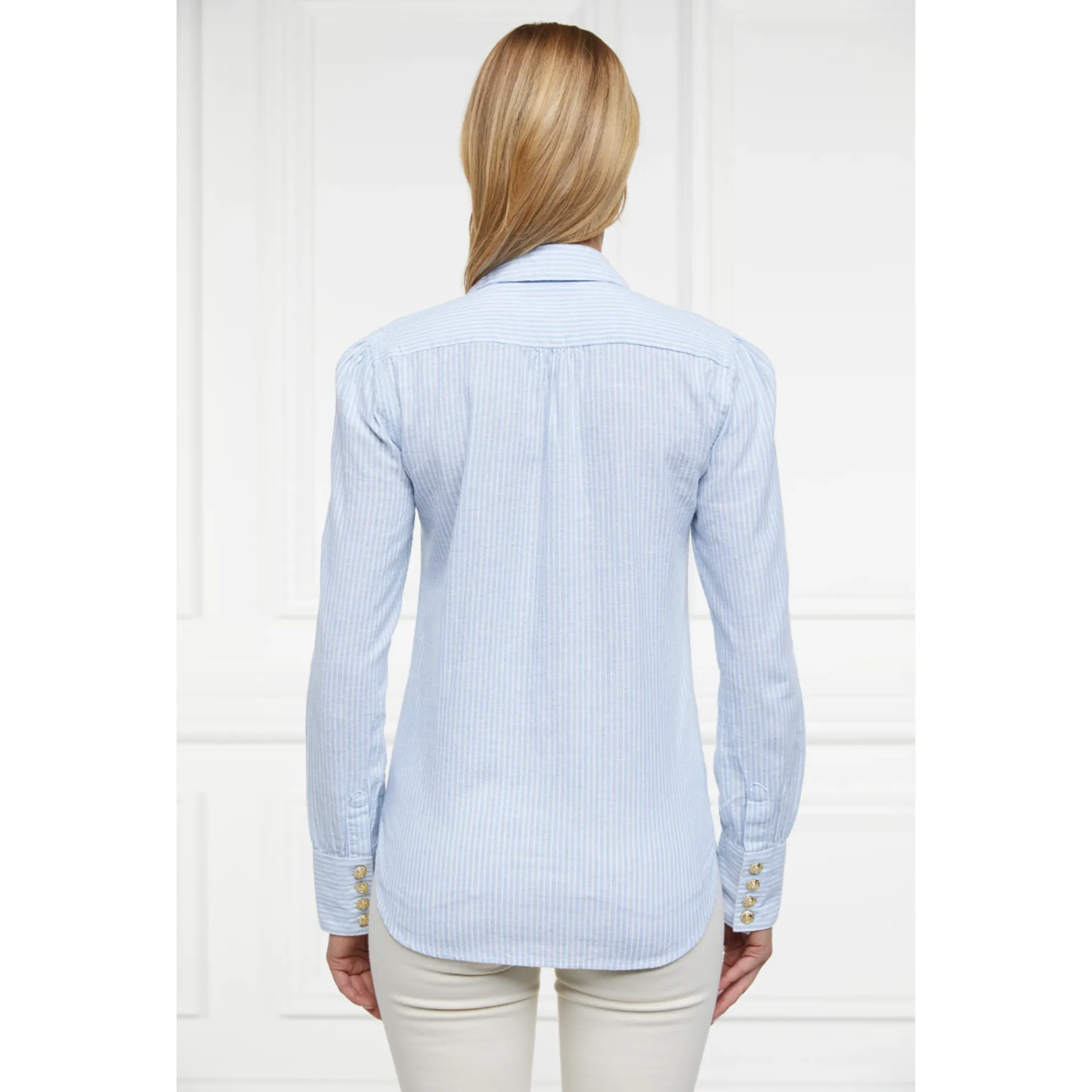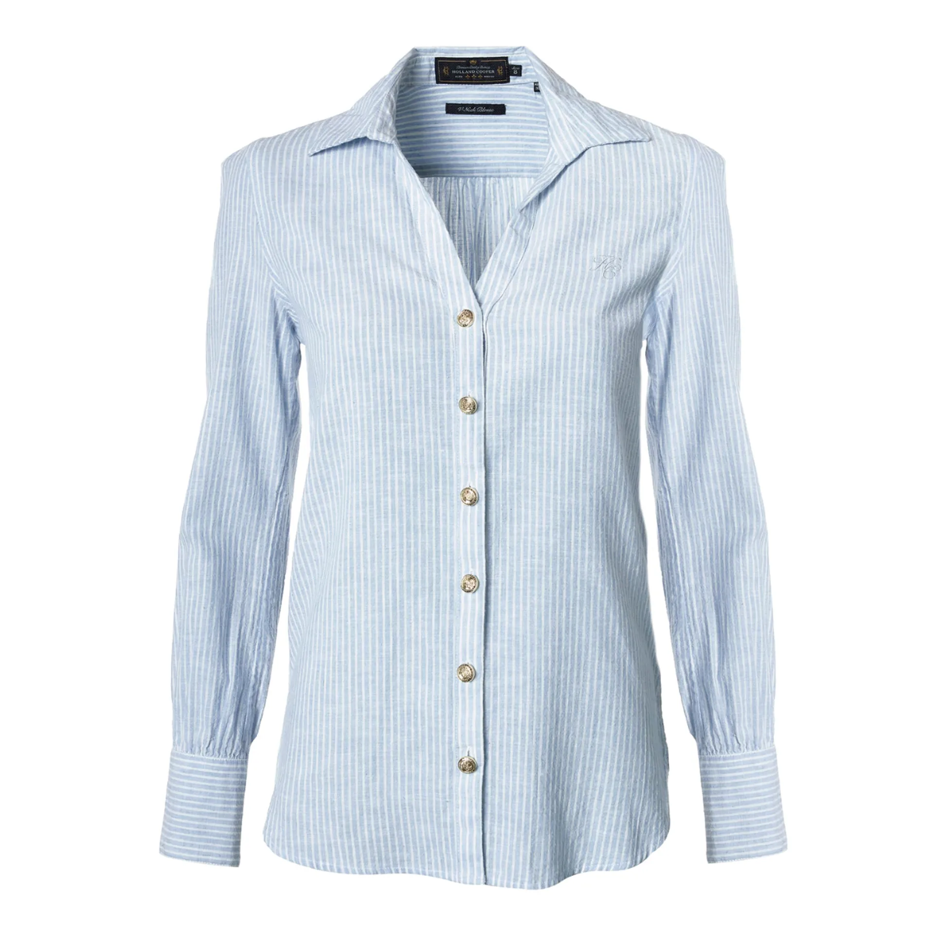 Question(s) answered about Holland Cooper Classic V-Neck Blouse - Azure Stripe