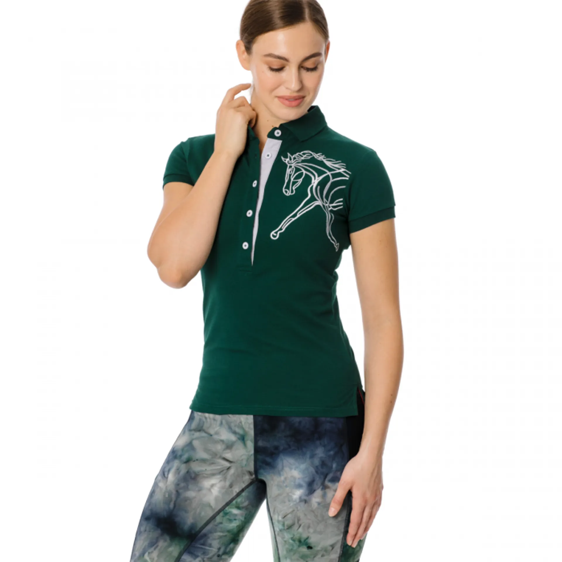 A Horseware classic! This beautiful quality polo is designed to flatter the female form whilst keeping you cool in the summer months. Lightweight and breathable with a much loved equestrian design.