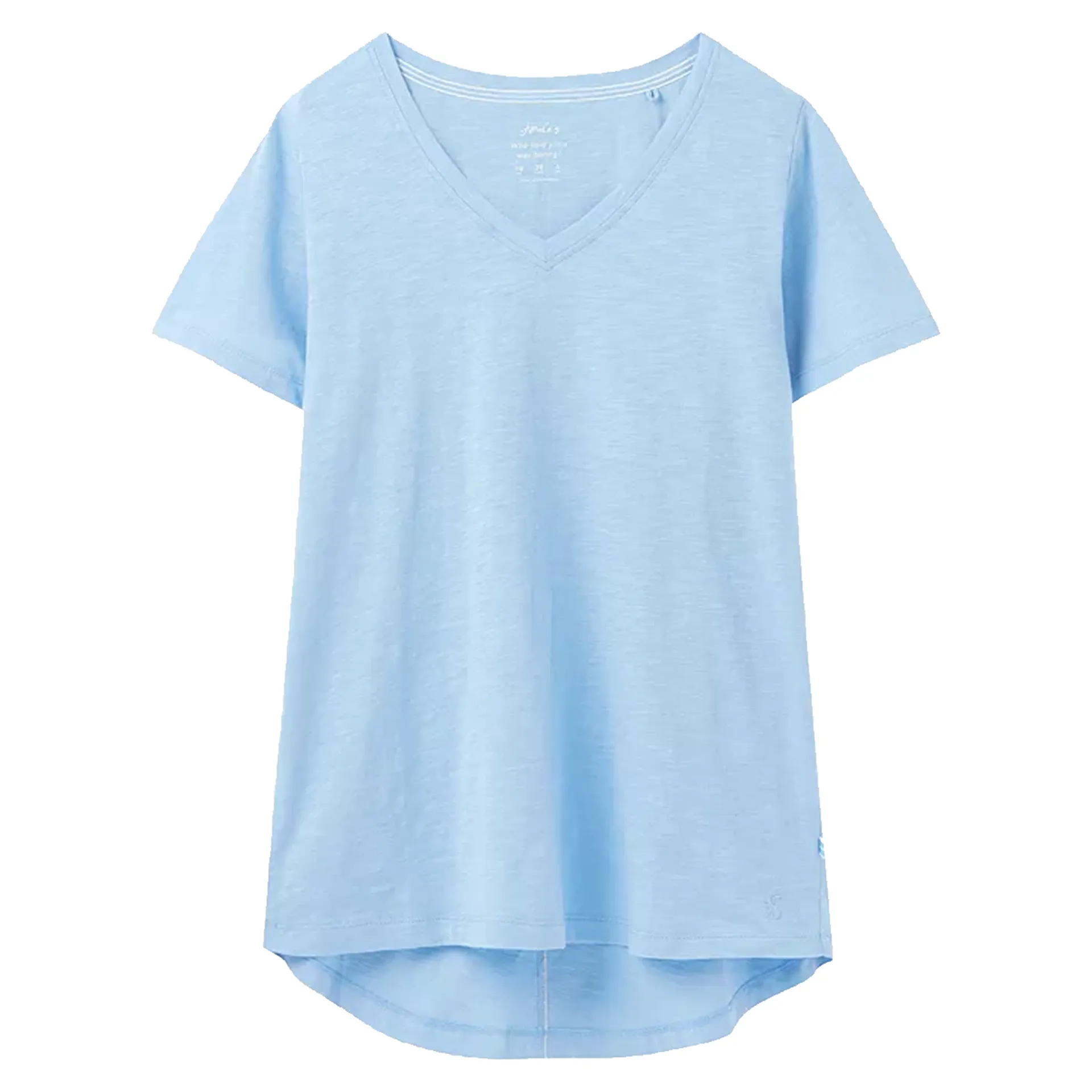 This easy fit and easy to style t-shirt is one to add to your wardrobe ’basics’. It has short sleeves, a flattering v-neckline and a rounded, dropped hemline. It fits easy through the body so can be tucked into skirts and shorts or worn casually with your favourite jeans.