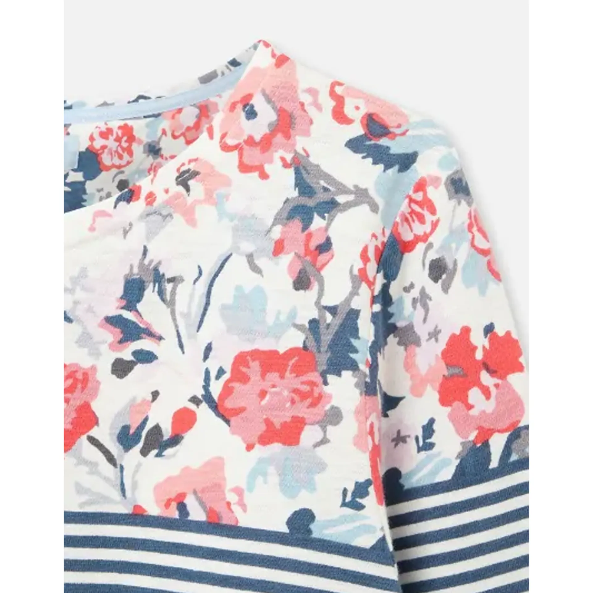 Question(s) answered about Joules Harbour Light Print Jersey Top - Cream Blue Floral Border
