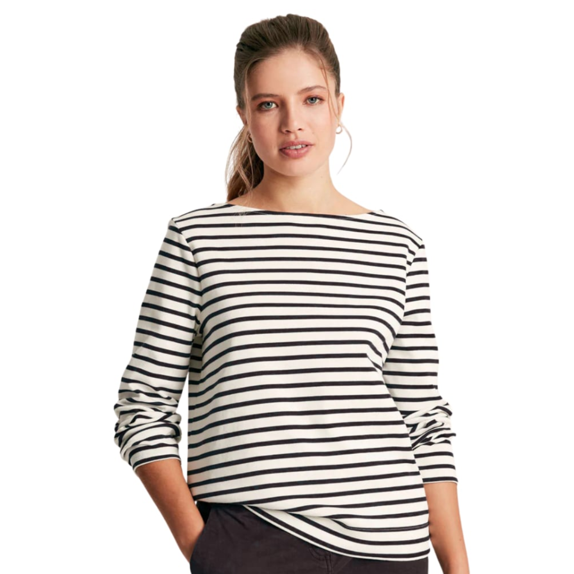 Question(s) answered about Joules Harbour Luxe Long Sleeved Sequin Jersey Top - White/Black