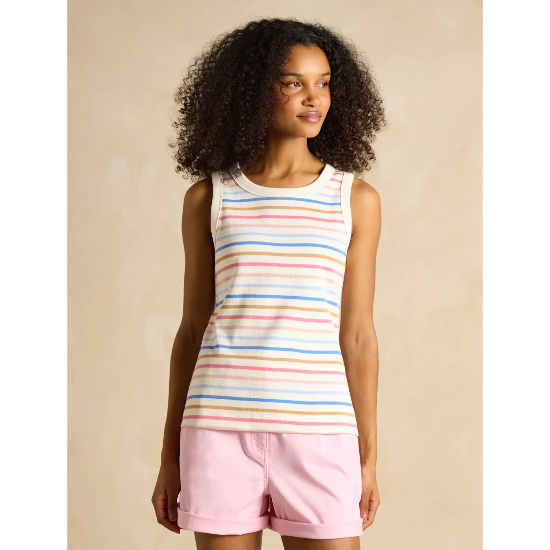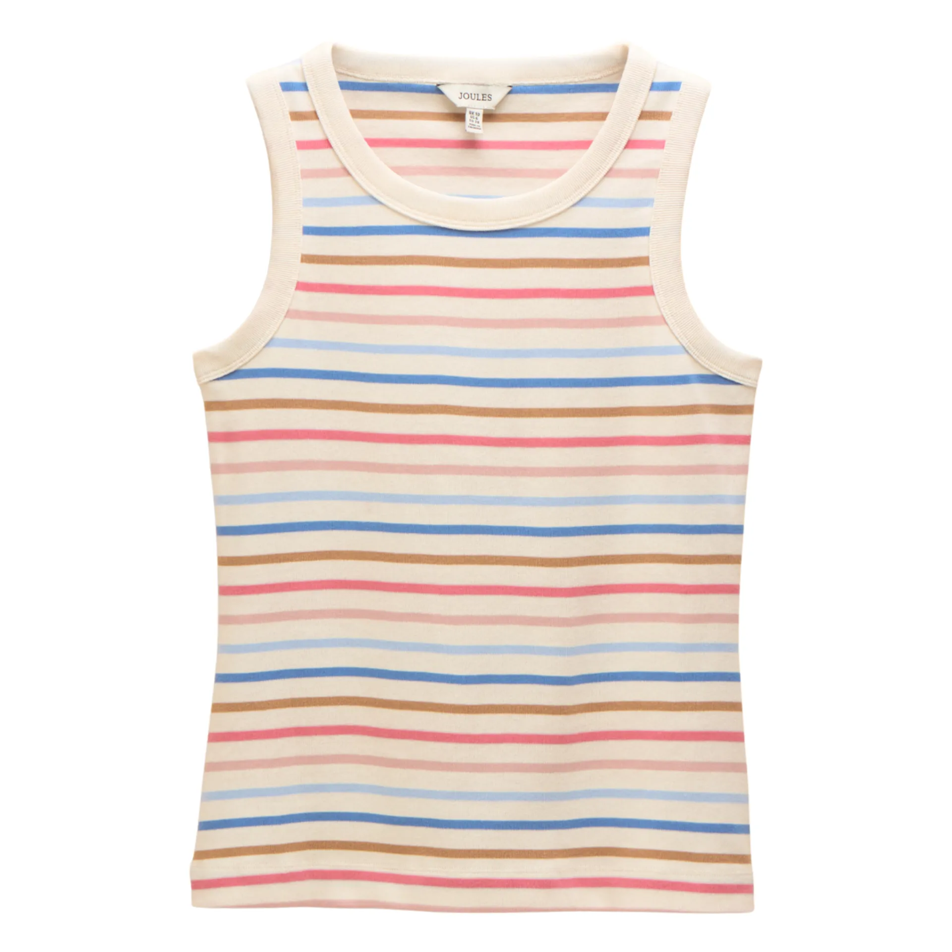 If you love our Harbour tops, then let us introduce the vest version. Crafted from the same Mariner's Grade 100% cotton jersey, with the same ribbed fabric finish and flattering fit, it's sure to become a staple this summer. It has a round neck, ribbed trims and is adorned with stripes for that signature Joules look. Mariner's Grade 100% cotton jersey Ribbed fabric finish adds stretch Sleeveless design Round ribbed neck Joules branded tab to the side.