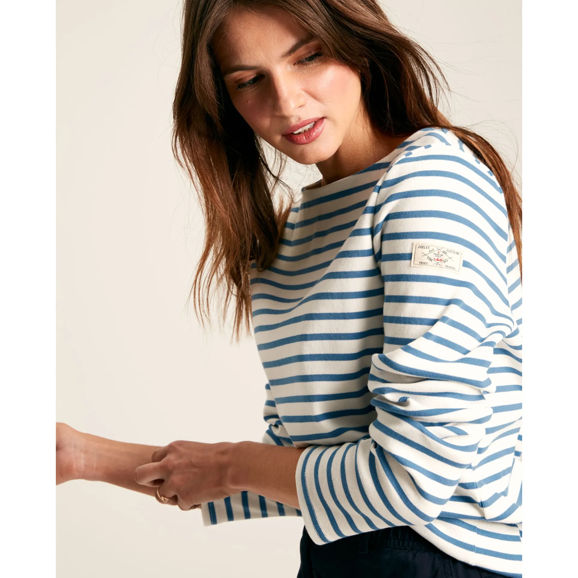 Question(s) answered about Joules New Harbour Ladies Relaxed Fit Jersey Top - Cream Blue Stripe
