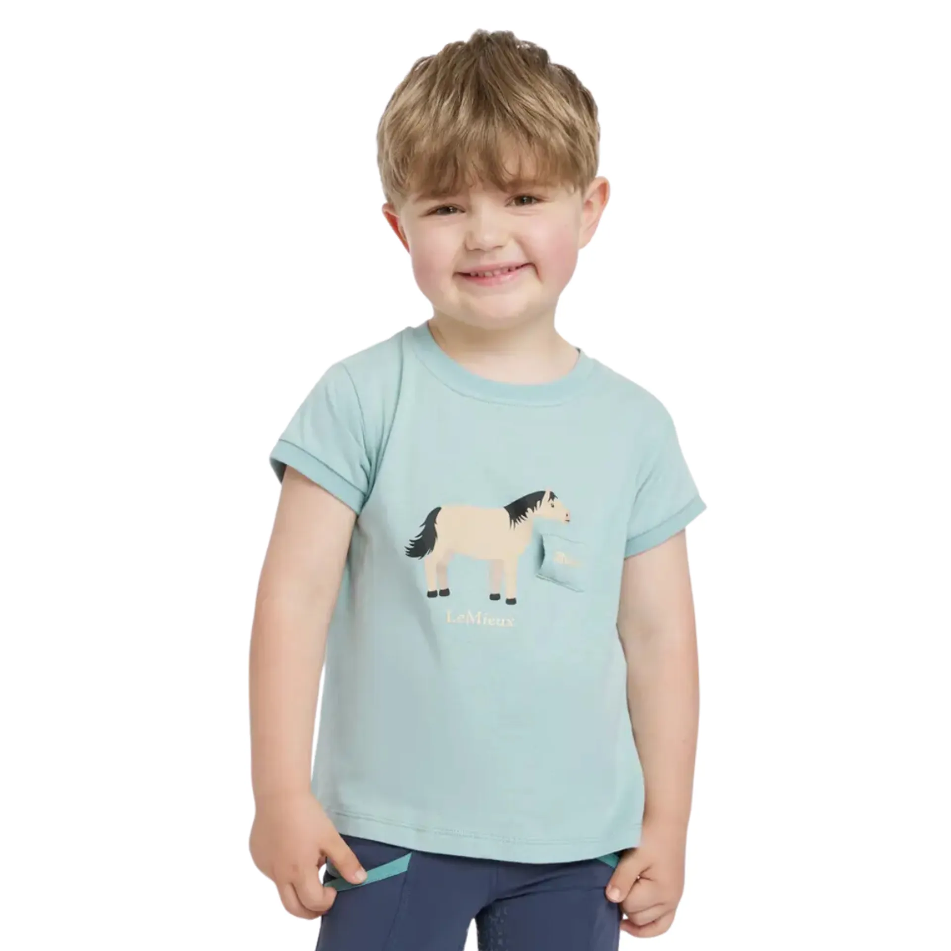 Add this sweet look to your mini rider's wardrobe for casual days with the Mini Alex T-Shirt. Made from smooth, super soft fabric with 360° stretch, it provides unrestricted comfort while keeping active riders cool.The fun chest design shows a sweet LeMieux mini pony ready to be groomed with a removable brush that's stowed in a little pocket on the front.The contrasting ribbed cuff detailing adds finishing touches that mini riders are sure to love.