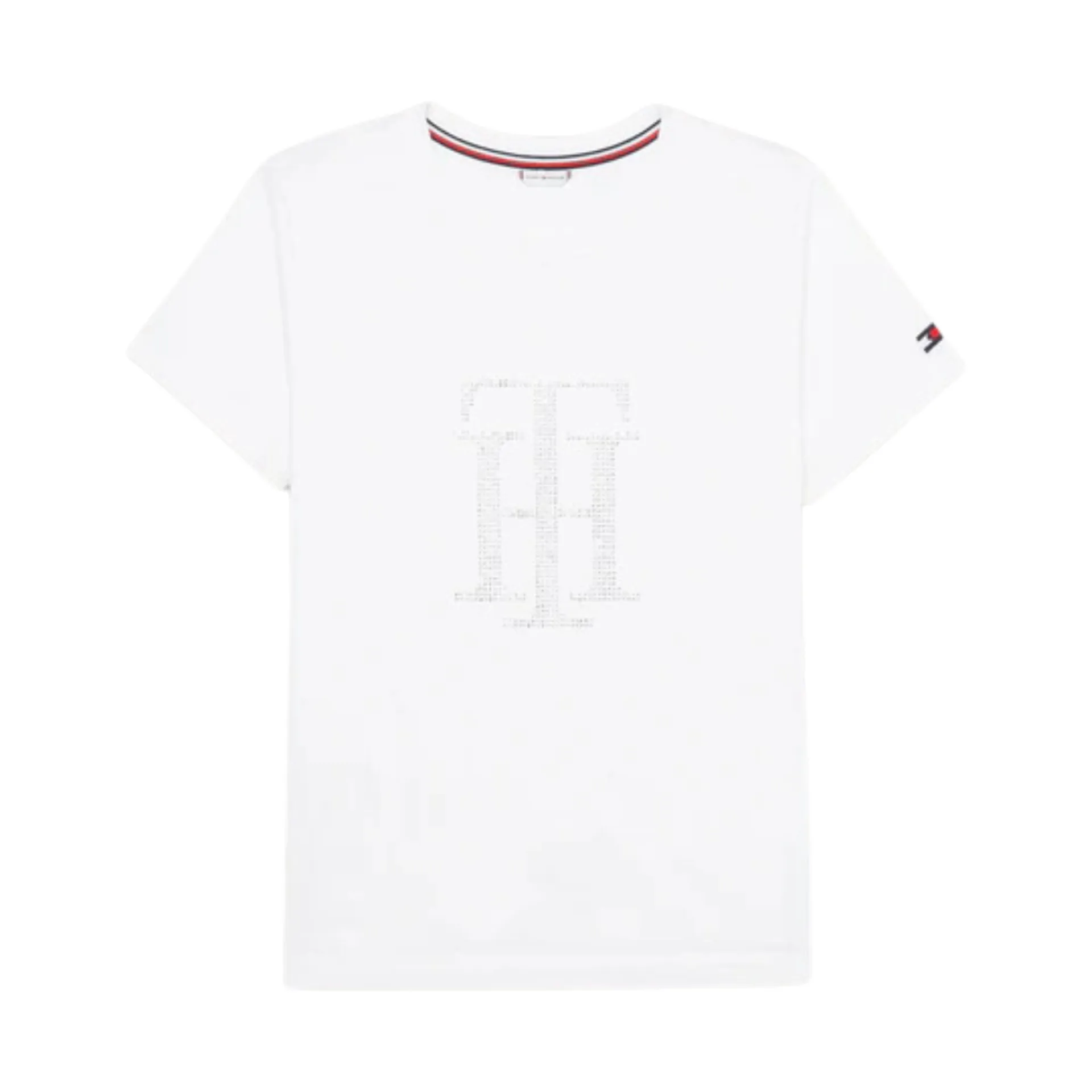 Short-sleeved T-shirt with a round neckline and large TH logo made of glittering rhinestones.