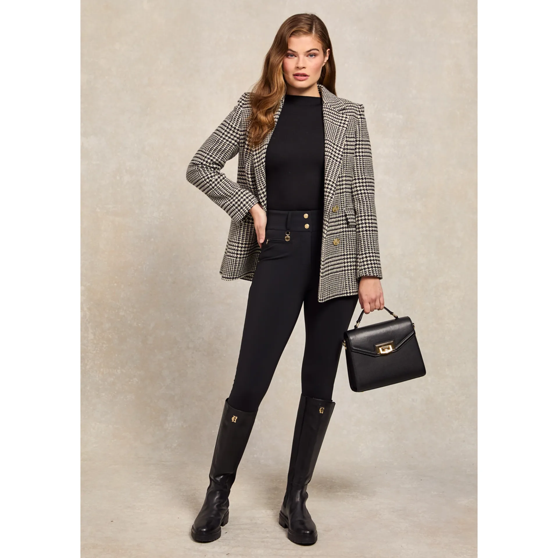 Sculpted for a contour fit, these high-waisted trousers are crafted from an ultra-soft, stretchy fabric for all-day comfort and flexibility. Featuring our signature HC gold buttons and hardware, they are made to move with you. Switch between wearing yours with boots or trainers, depending on the occasion.