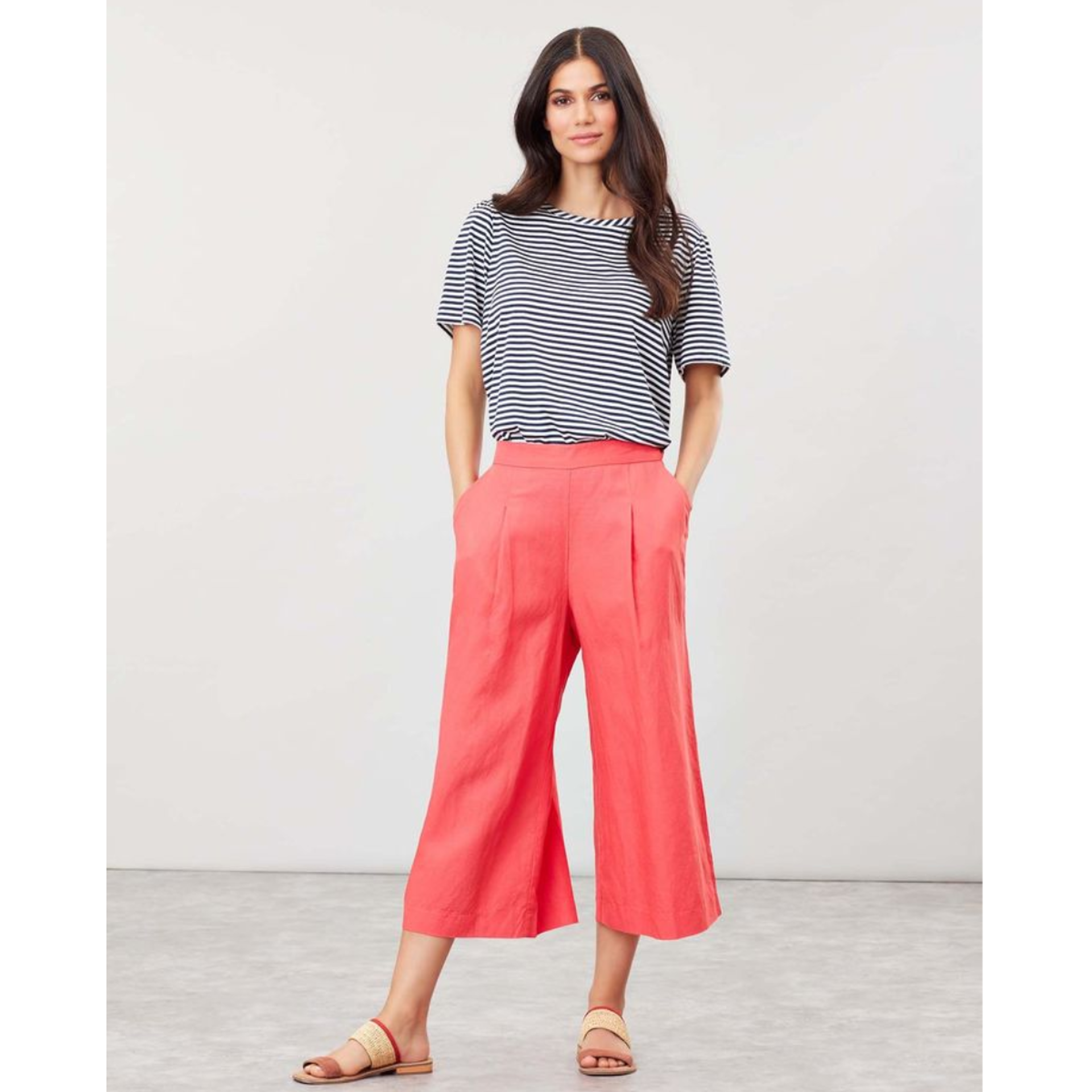The Joules Alexi Fluid Plain Culotte in Poppy is a wide-leg, cropped culotte made from a Tencel-Lined blend, designed for a lightweifht nd fluid feel; perfect for warmer months.