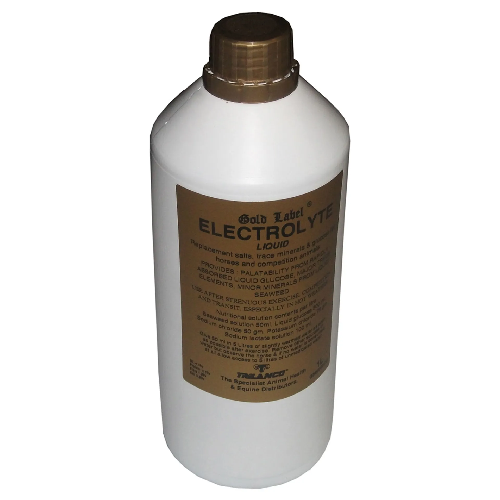 Use in drinking water after a competition, travelling or in hot weather. Contents include liquid seaweed, liquid glucose and major mineral salts.