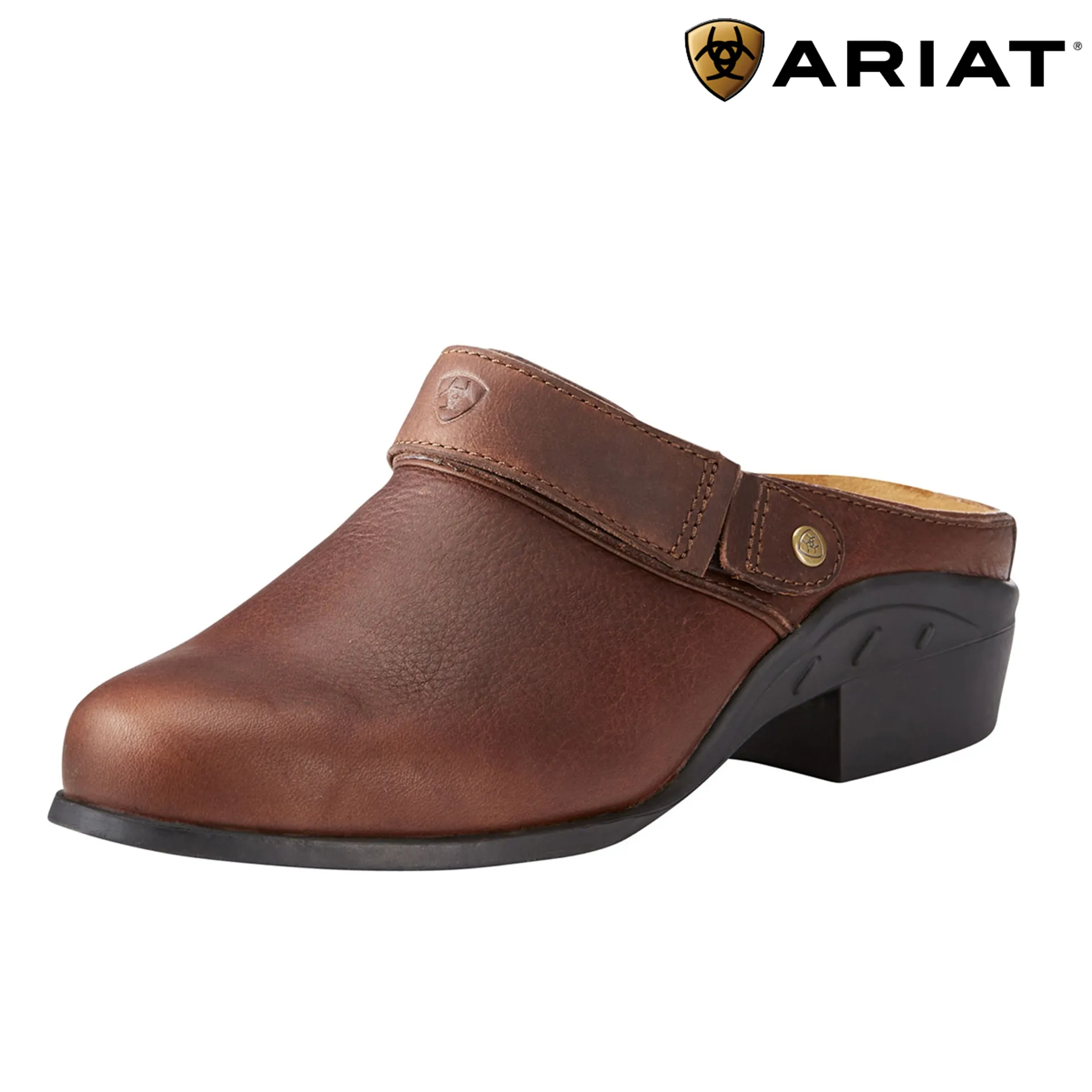 The famous Ariat Womens Sports Mule is a slip on mule with optional heel strap, made in full-grain leather upper, moisture wicking sock liner, stabilising lateral motion control device, long wearing duratread outsole.