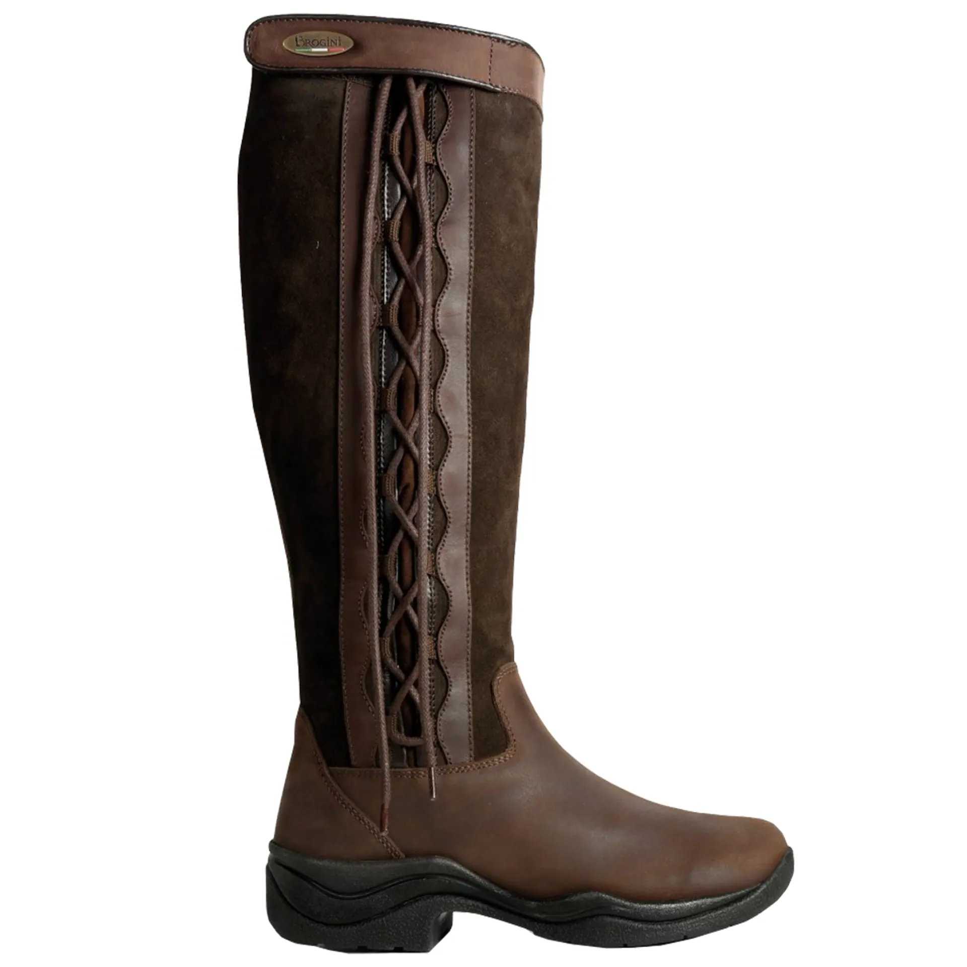 This hybrid casual/riding boot is fully waterproof up to 16cm and features an additional 2cm height and spur studs making it suitable for riding. The stylish lace up detail down the side means the fit can be adjusted easily for a flattering yet comfortable look, and is perfect for wider calves.