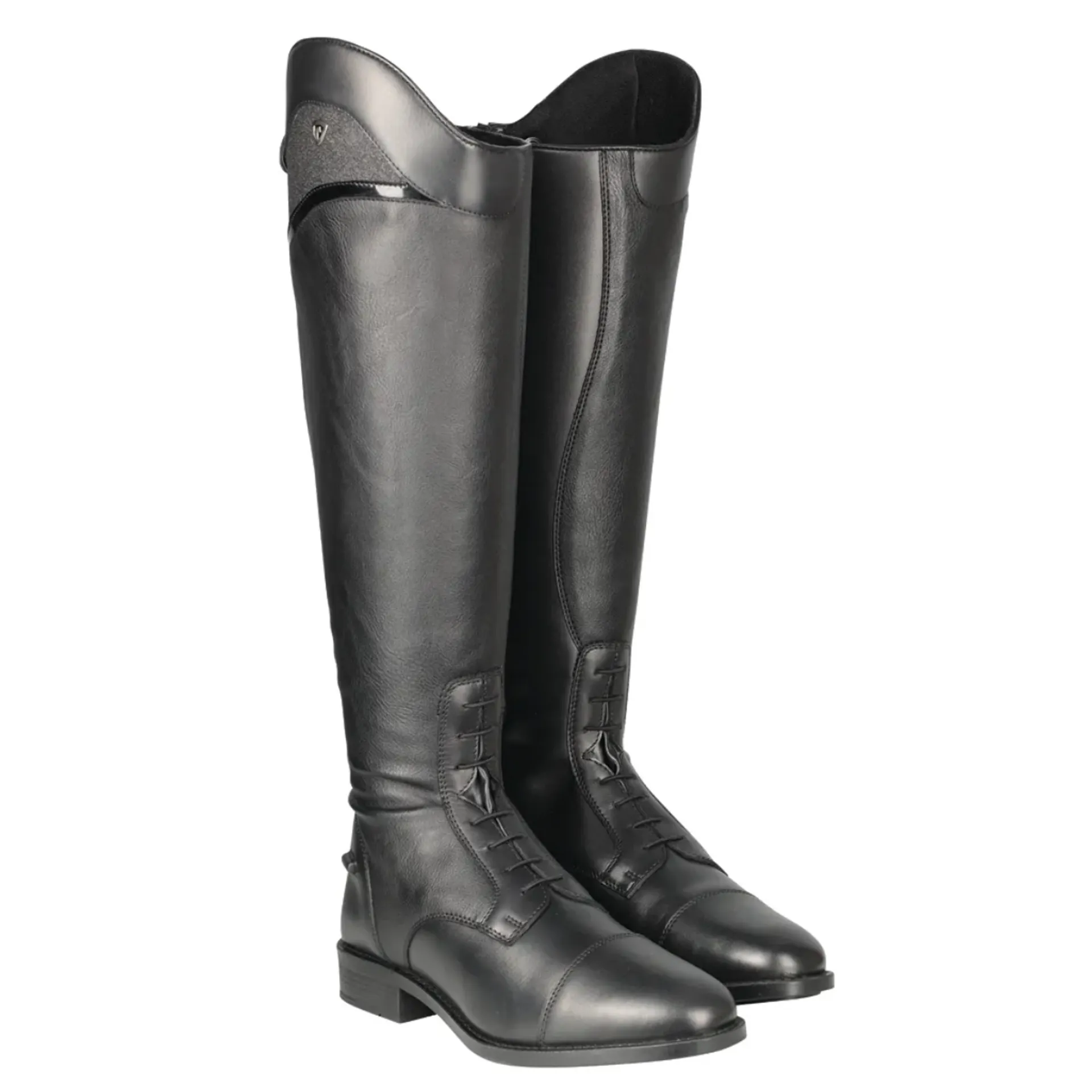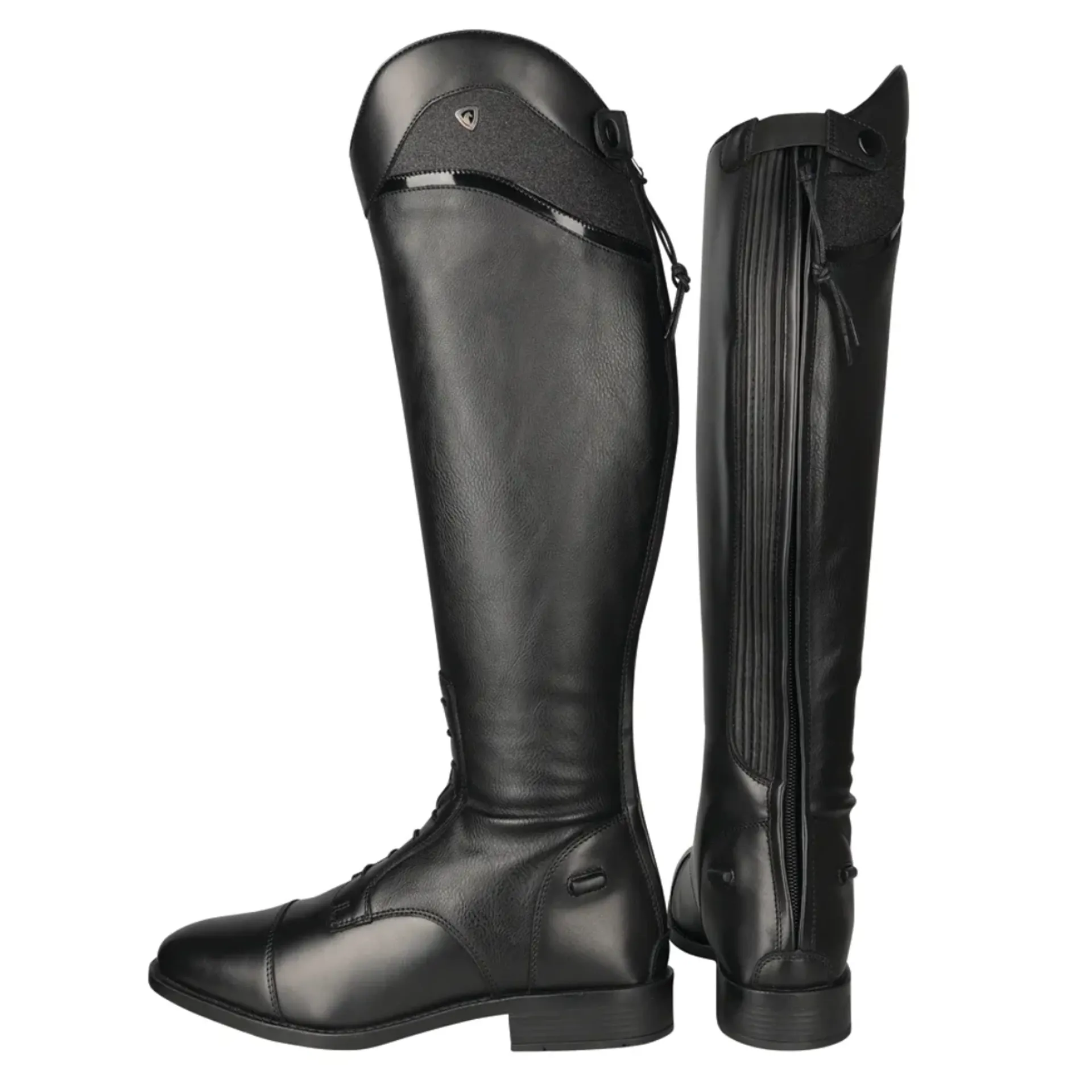 Smart and sophisticated - the Atrani Riding Boot is a traditional field boot with the addition of a shaped shimmer panel and patent strip. The leather inner and foot create a durable and flattering look, with synthetic outer to allow a comfortable contour to the leg. Featuring elasticated back panel for superior comfort, ease of fastening and close contact feel and sturdy zip fastening with secure top press stud closure. This streamlined boot has been innovatively designed to be comfortable, stylish and supportive.