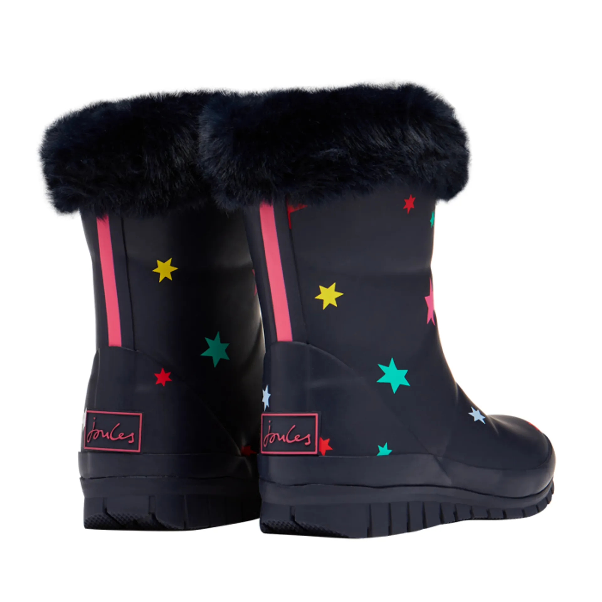 The Joules Junior Chilton Faux Fur Tipped Welly - Navy Stars