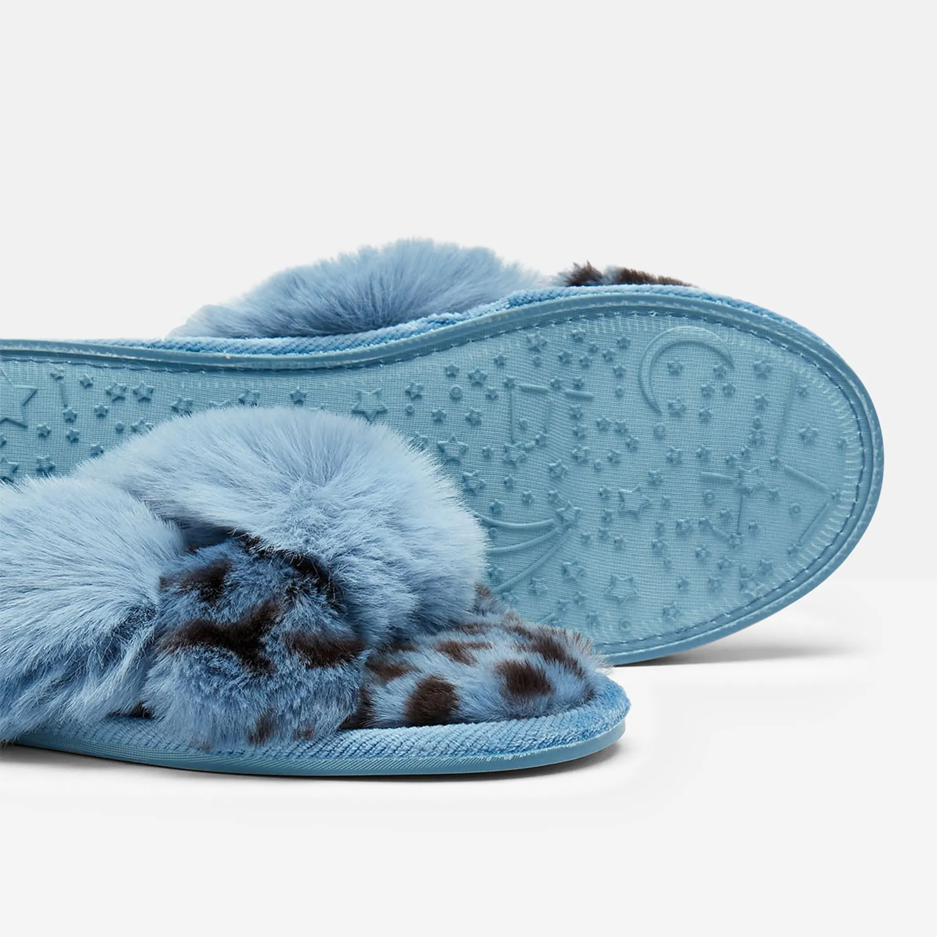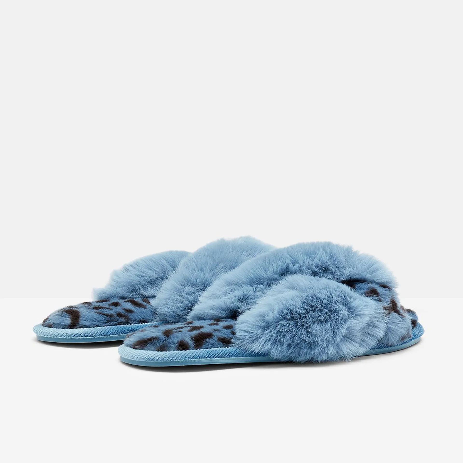 Joules Mabelle Cross Strap Faux Fur Slider - Blue Leopard