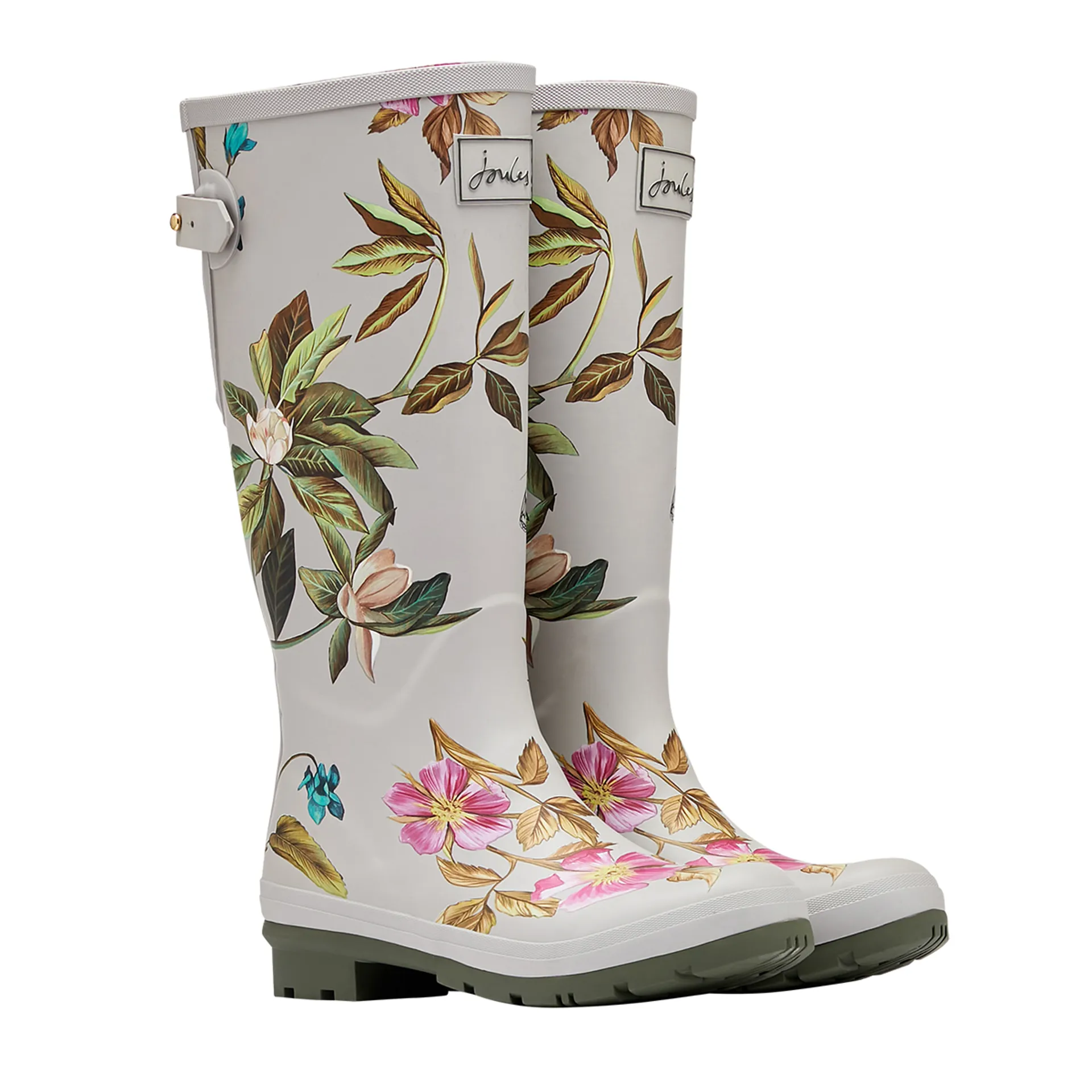 Joules Printed Wellies With Back Gusset - Silver Floral