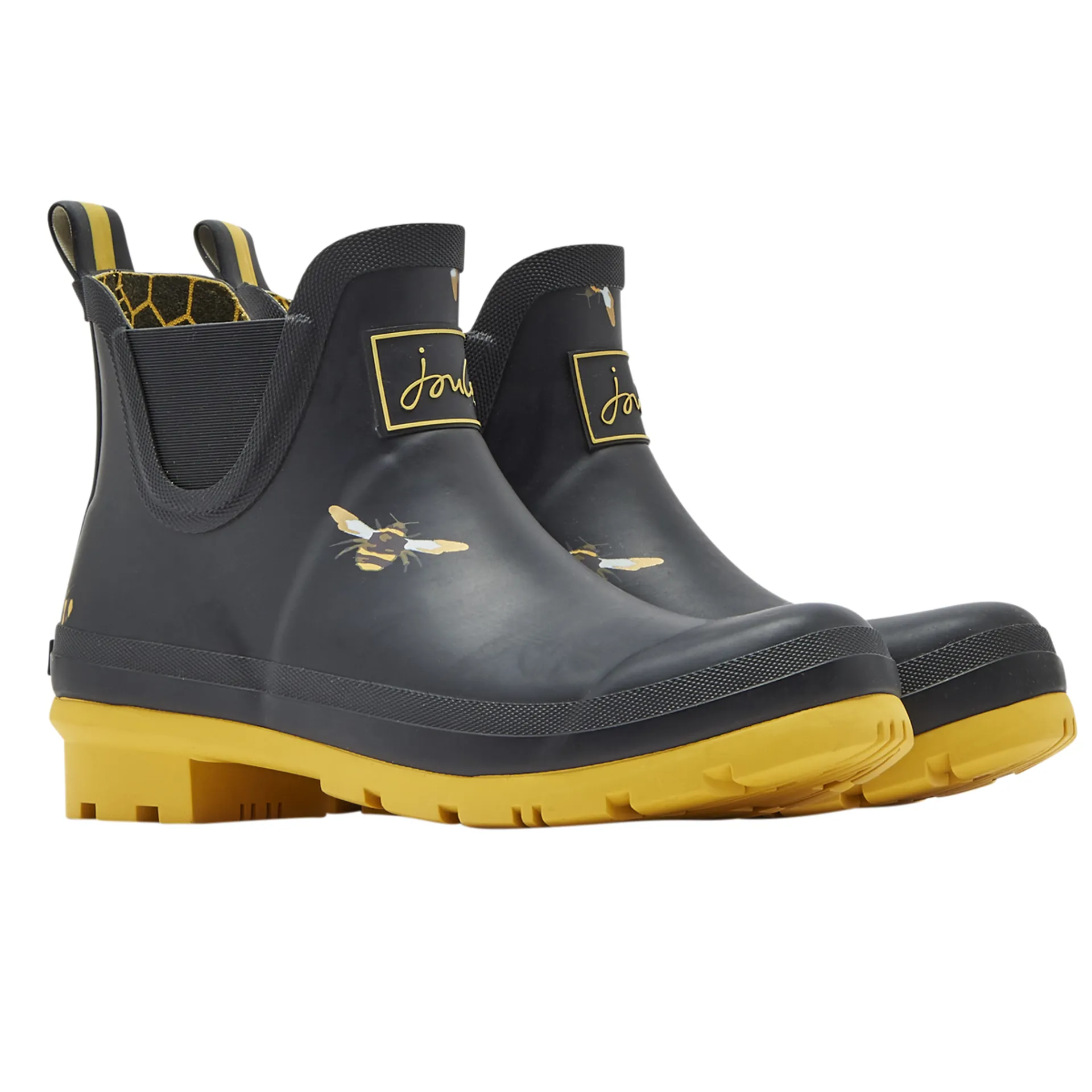 Question(s) answered about Joules Wellibob Short Printed Wellies - Black Metallic Bees