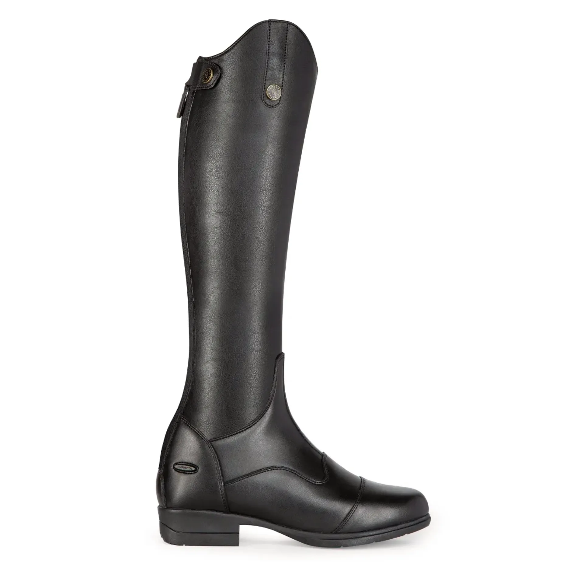 Using the Moretta elegant boot leg construction, the Marcia long riding boots are crafted from synthetic leather for a durable, easy-care finish. A close leg fit is achieved using softer stretch outer panels that hug the leg. Dressage cut tops. Rear YKK zips. WickAway stay dry linings. ActiveFlex insoles with Impact Support System. Moretta shock absorbing rubber soles with steel shanks.