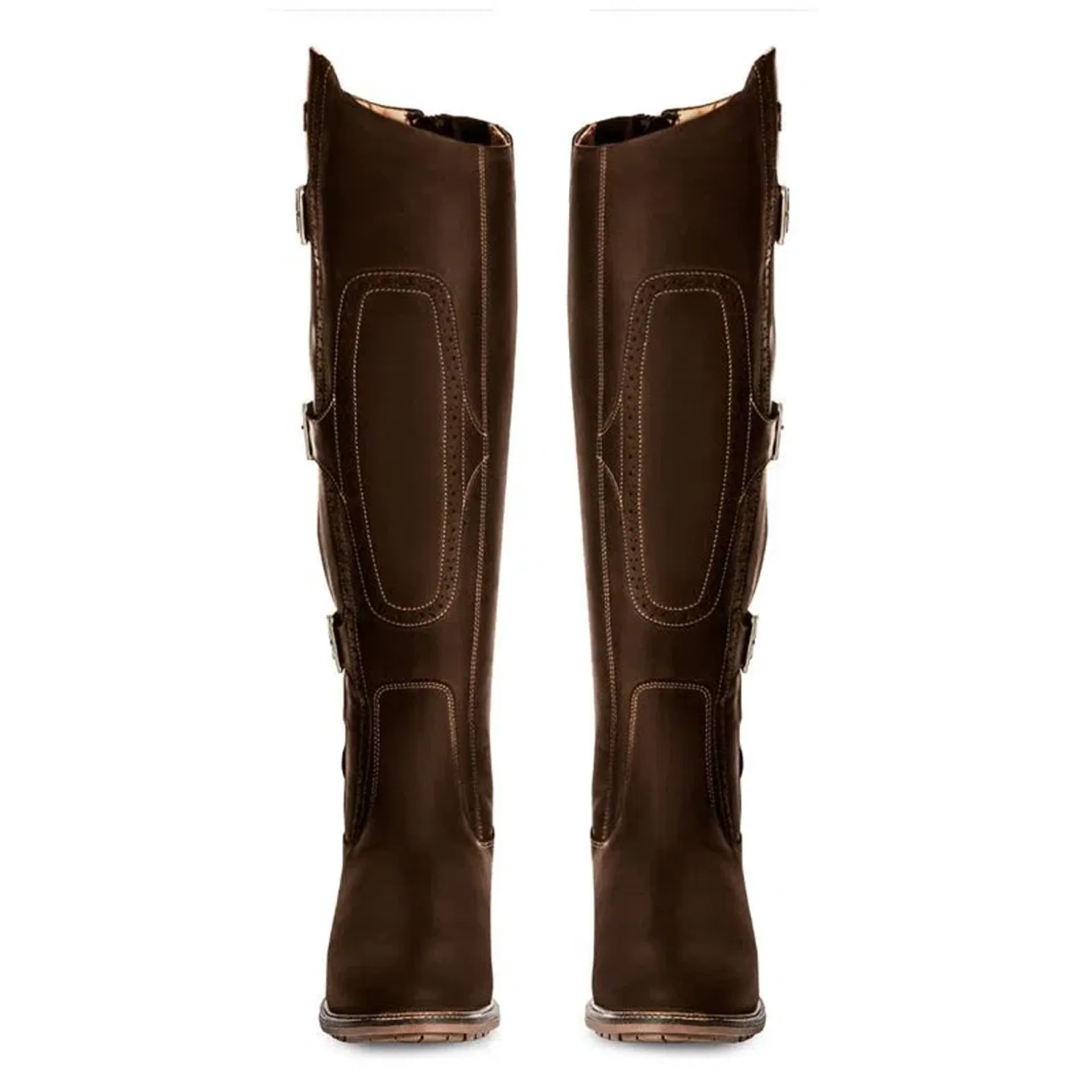 A super stylish country boot which combines all the style and class of country life with the fit and performance of a riding boot. No longer do you have to were baggy, ill-fitting, and uncomfortable country boots.The Parkland 2 is hand crafted in sumptuous full grain oiled nubuck leathers, with cuff leather lining. The combination of a rear zipper with side buckles and stretch panels under the side buckles ensures you can achieve the perfect fit.Further lined with 200gs of Thinsulate to help regulate temperature. Built on our tried and tested All-terrain welted country rubber stirrup friendly soles and fitted with our coolmax lined cushioned footbed makes sure you are comfortable all day long. Perfect to wear at the barn, at the show our out and about town.