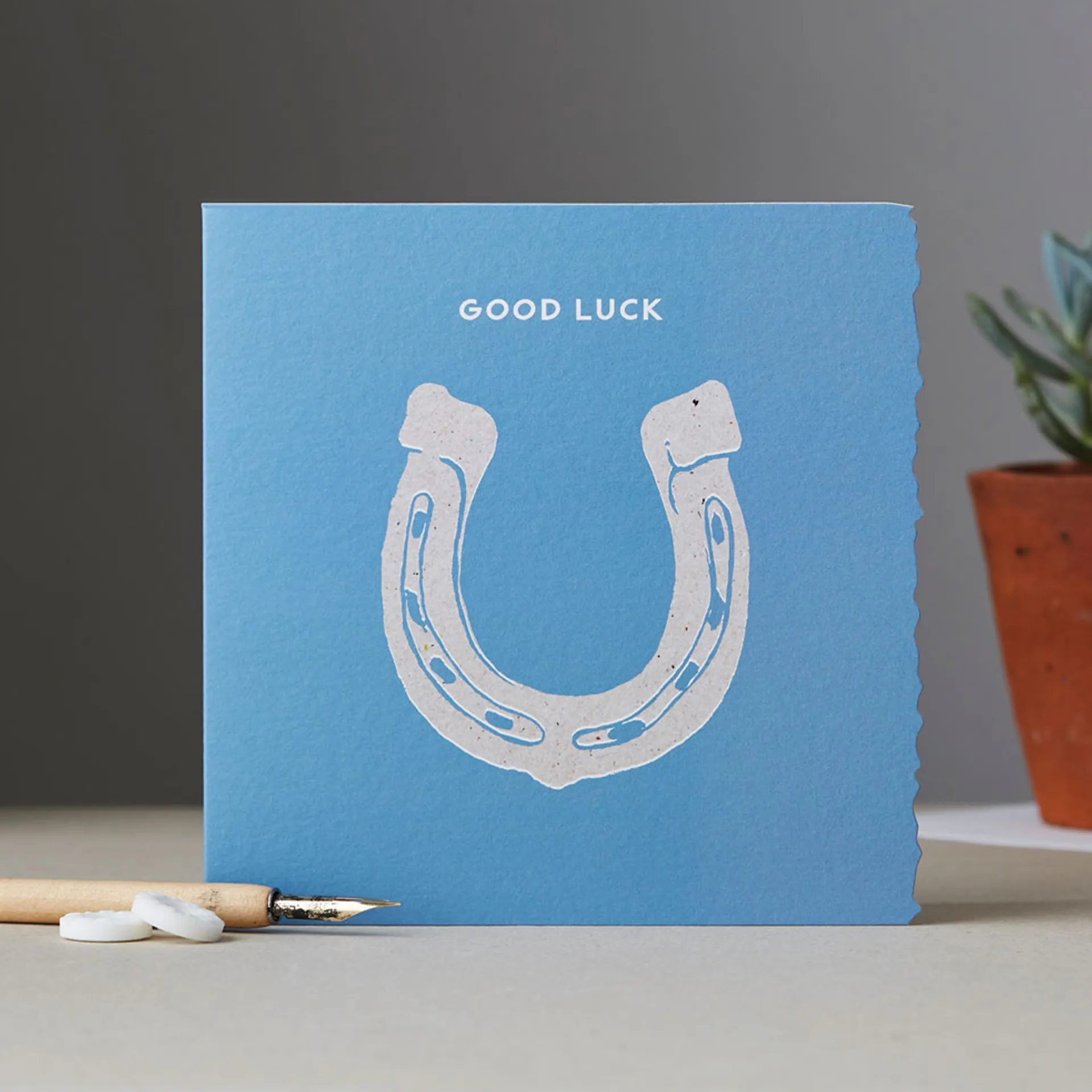 Featuring an original watercolour design, enhanced with a solid colour on a natural fleck background with a unique die-cut edging. Each card is designed to express your feelings. Blank inside for your own message. Individually cello wrapped.