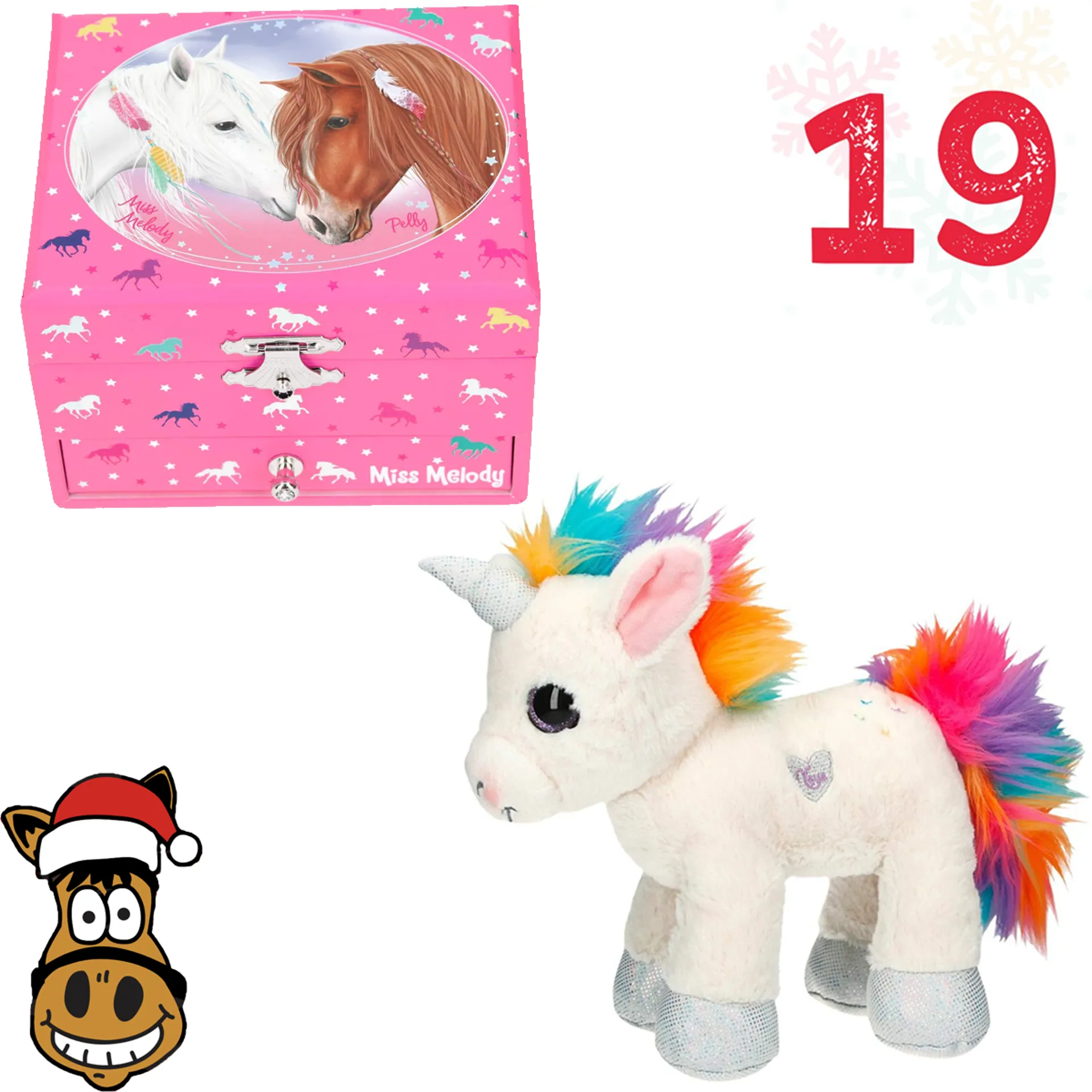 Quite beautiful - inside and outside! In this cute pink box with great horse prints and a beautiful picture of Miss Melody and Pelly, jewellery and other little treasures are in good hands. Under the inside lid is not only a mirror, but also the absolute highlight of this box: If you lift the lid, a beautiful melody plays and a small white horse figure starts to turn. And then it says: Wind up and dream, wind up and dream!