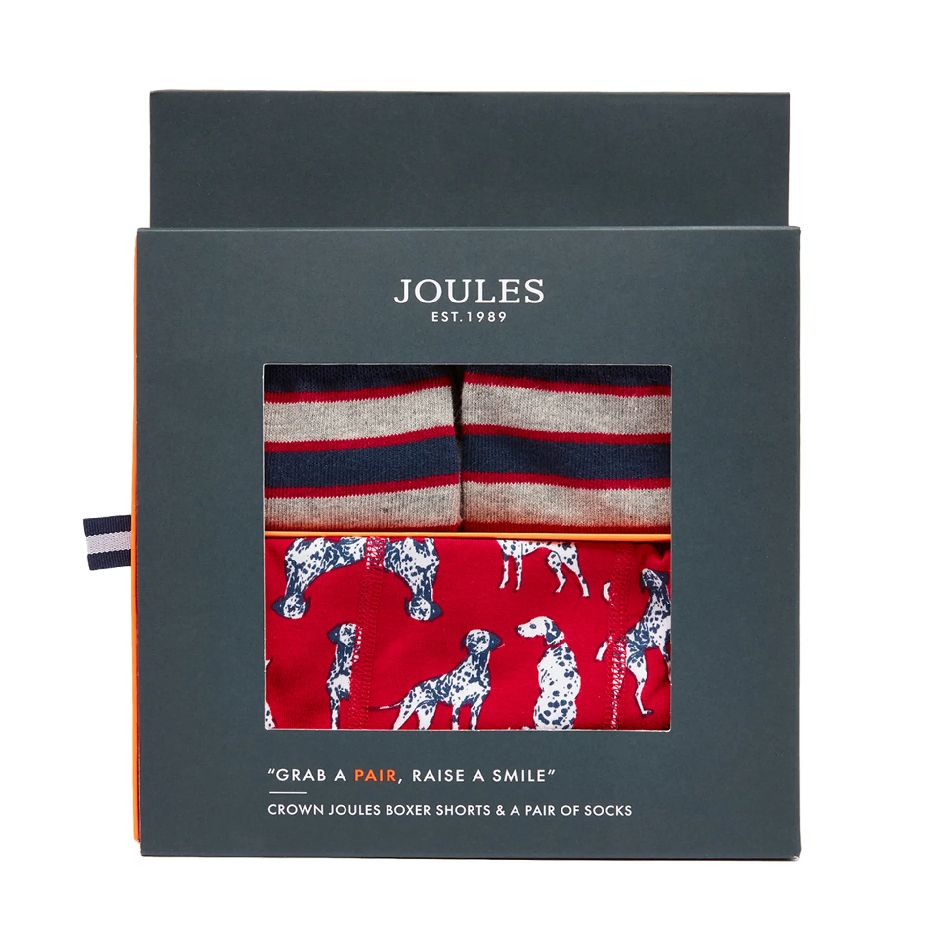 Question(s) answered about Joules Put A Sock In It Sock and Boxer Gift Set - Red Dog