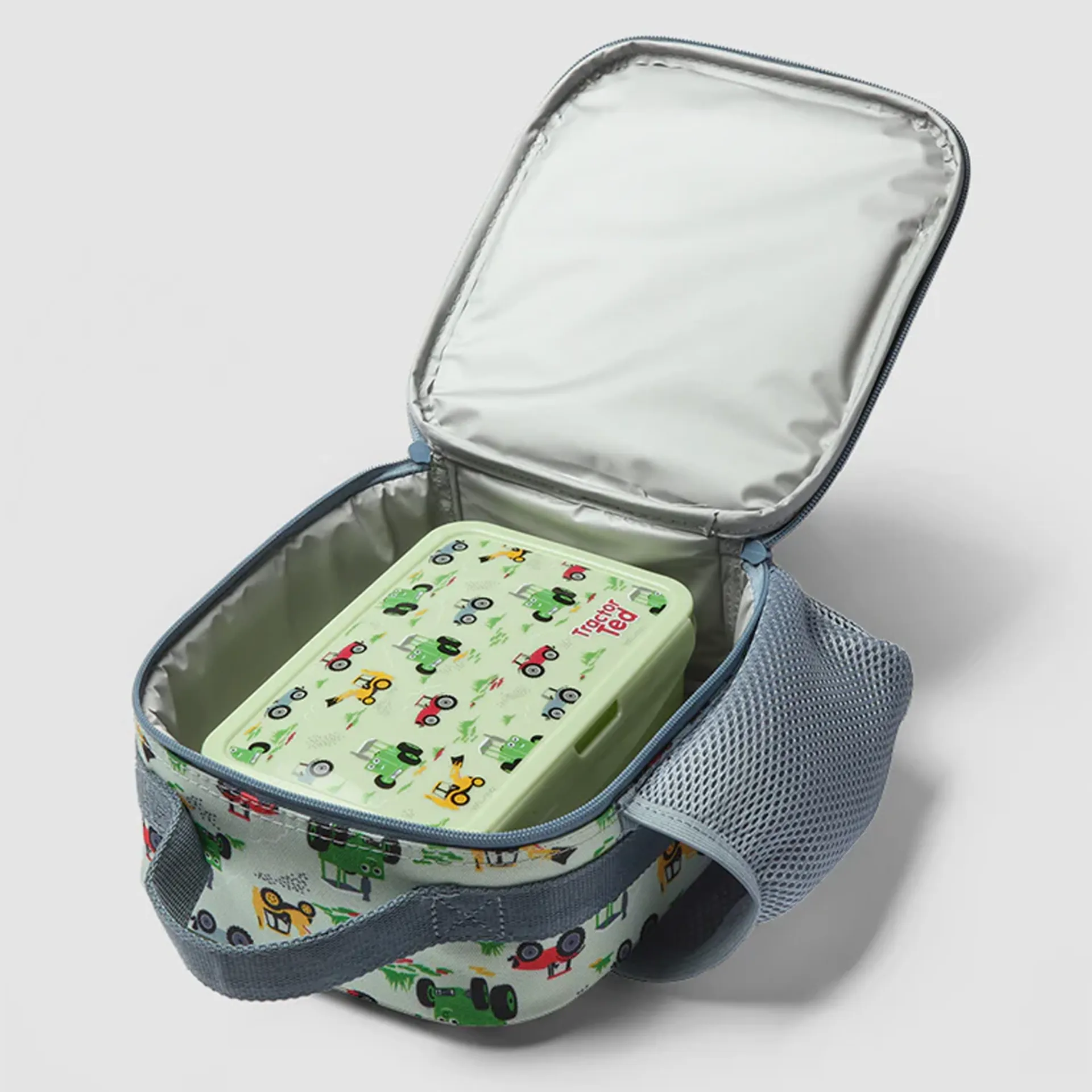 The Tractor Ted Machines Lunch Bag is perfect for school or nursery lunches and picnics. With an easy to carry top handle, handy wipe clean insulated lining and a side mesh pocket for a water bottle. Pair it with our Machines Rucksack and it fits the Machines Lunch Box or Snack Pots too.