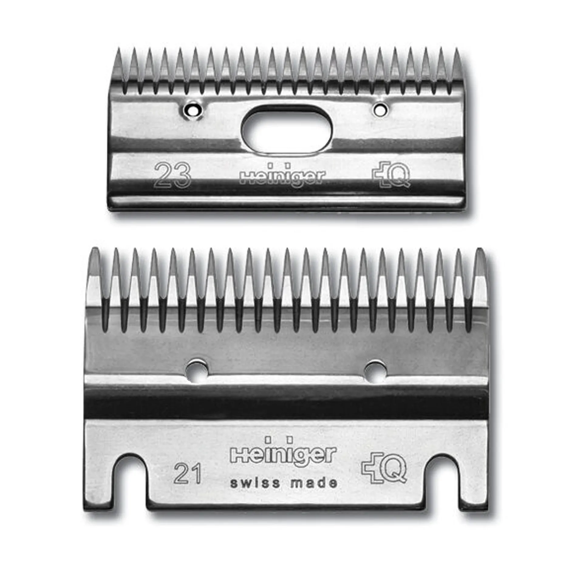 This Coarse Blade Set from Heiniger is perfect for beef and dairy cattle. The bottom blade is 23tooth with the top blade 21. After clipping it will leave your animals coat length between 2-4 mm.