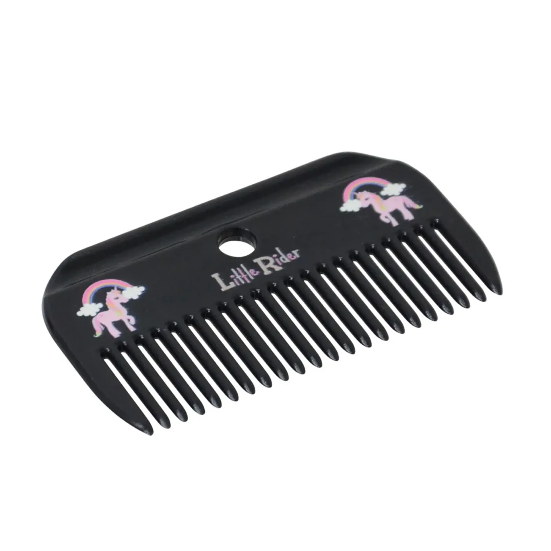 Handy mane comb featuring the Little Rider logo and fun unicorn and rainbow design.