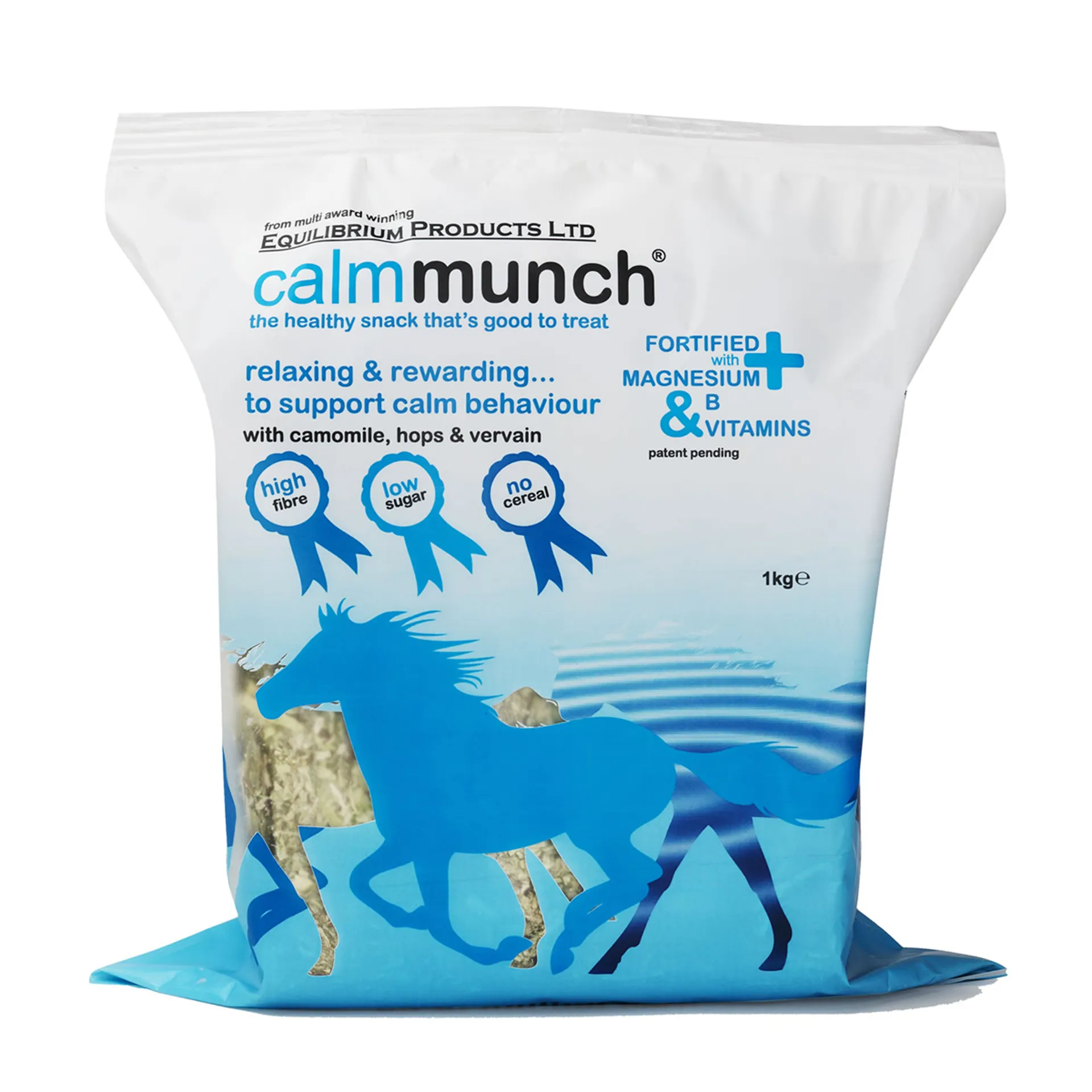 The perfect companion for stressful situations, calmmunch by its high fibre nature will help keep your horse occupied with its delicious timothy hay, while providing magnesium, B vitamins, camomile and hops to support calm behaviour.