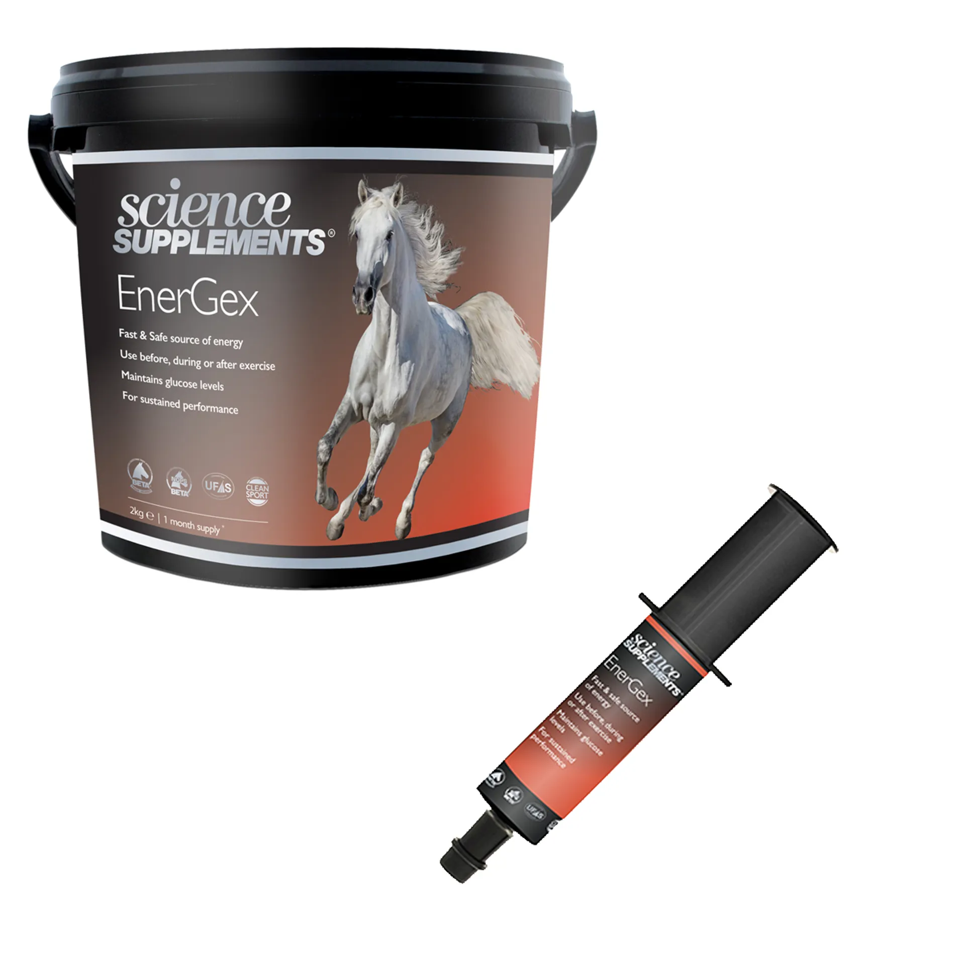 When? EnerGex can be used before exercise in horses lacking in energy and can also be given to horses with reduced appetite, for example during travelling or to old horses or poor doers. It can be given daily in feed for a more consistent supply of energy or as a syringe for use between rounds, events or at the onset of fatigue.