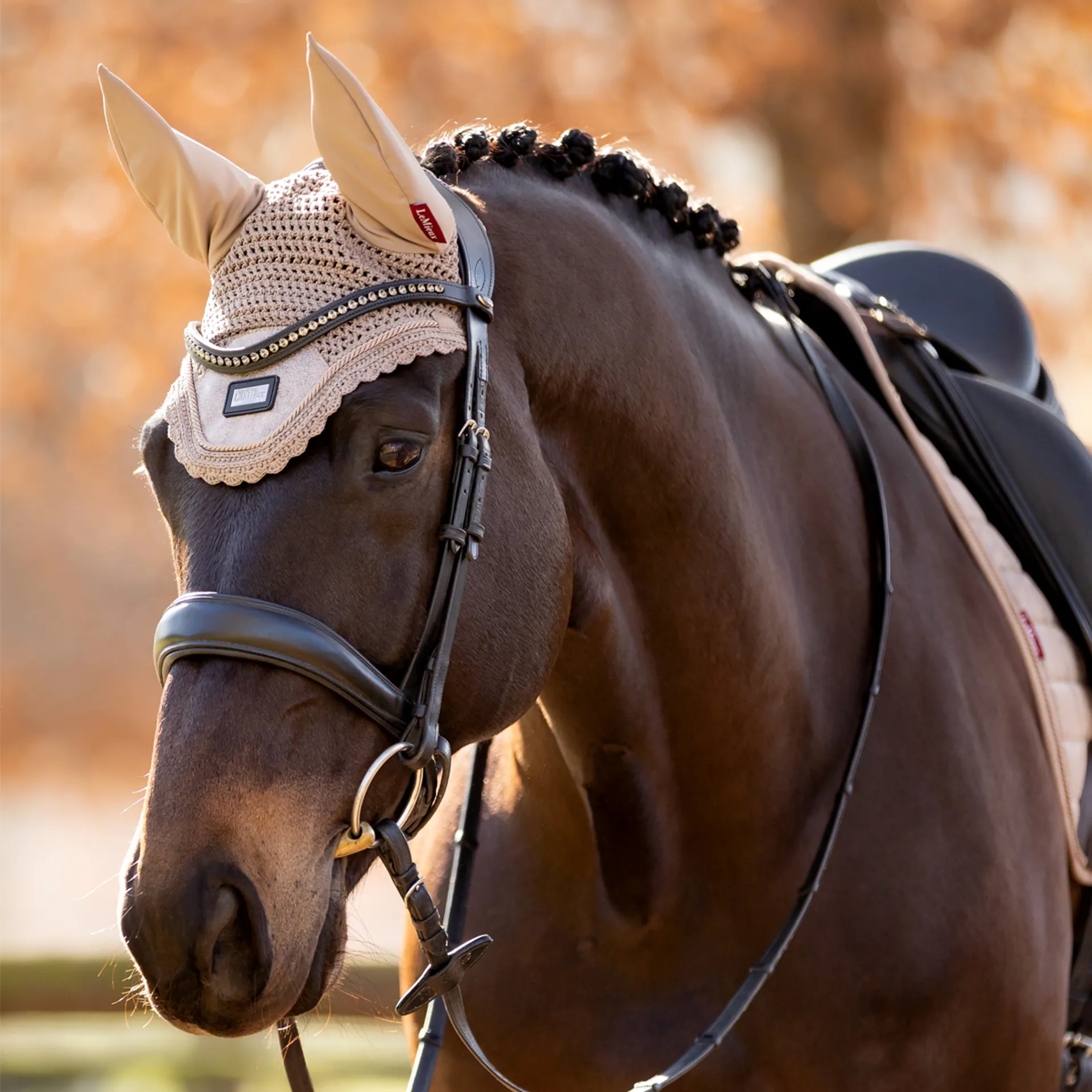 Soft stretch Lycra ears give a comfortable fit for your horse. The fly hood is finished with a LeMieux embossed metal motif, set into a rubber base.