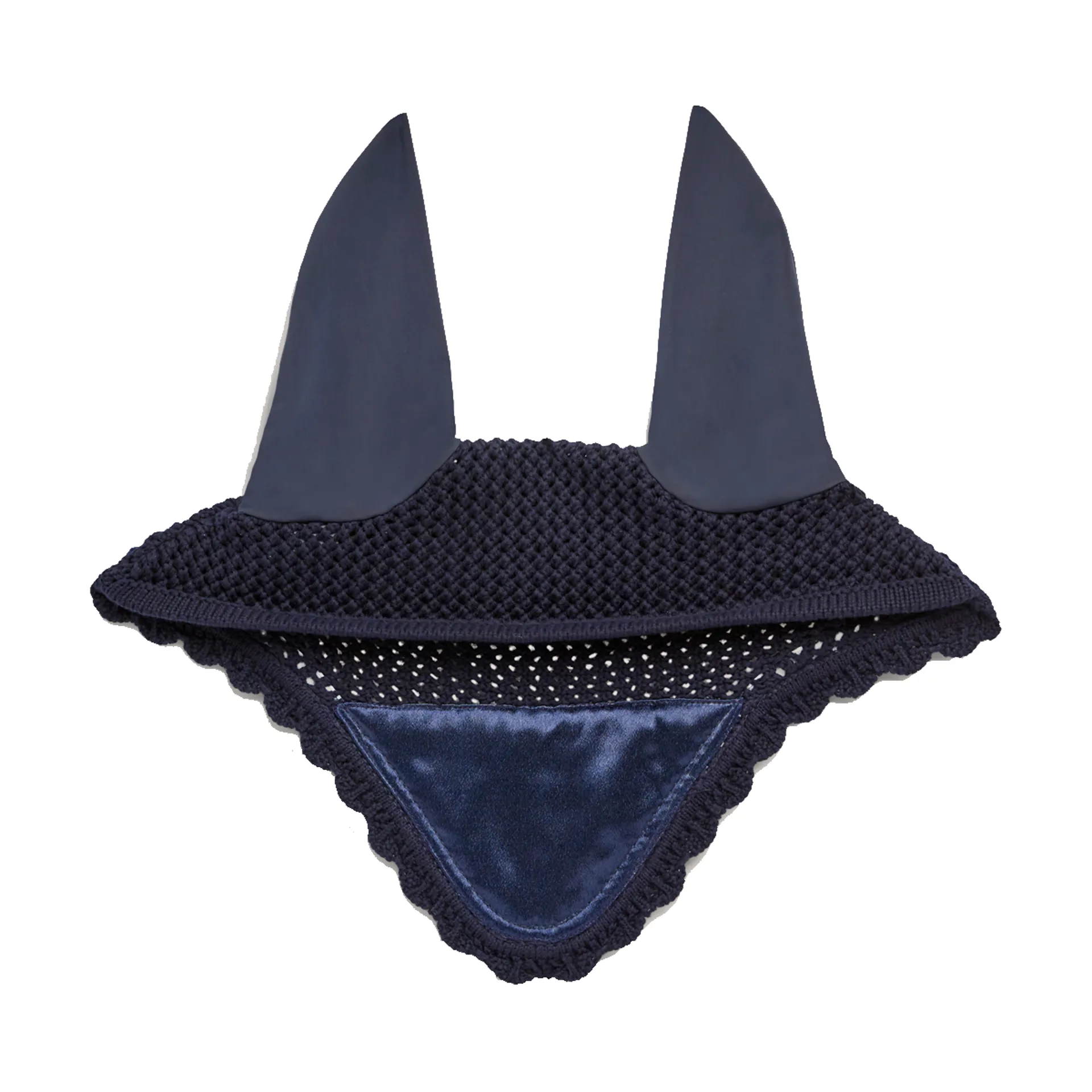 The Windsor crochet fly veil features lightweight, bi-elastic cotton ears. The forehead area is adorned with a shine trim and a high density 'Tommy Hilfiger' lurex embroidery and flag.