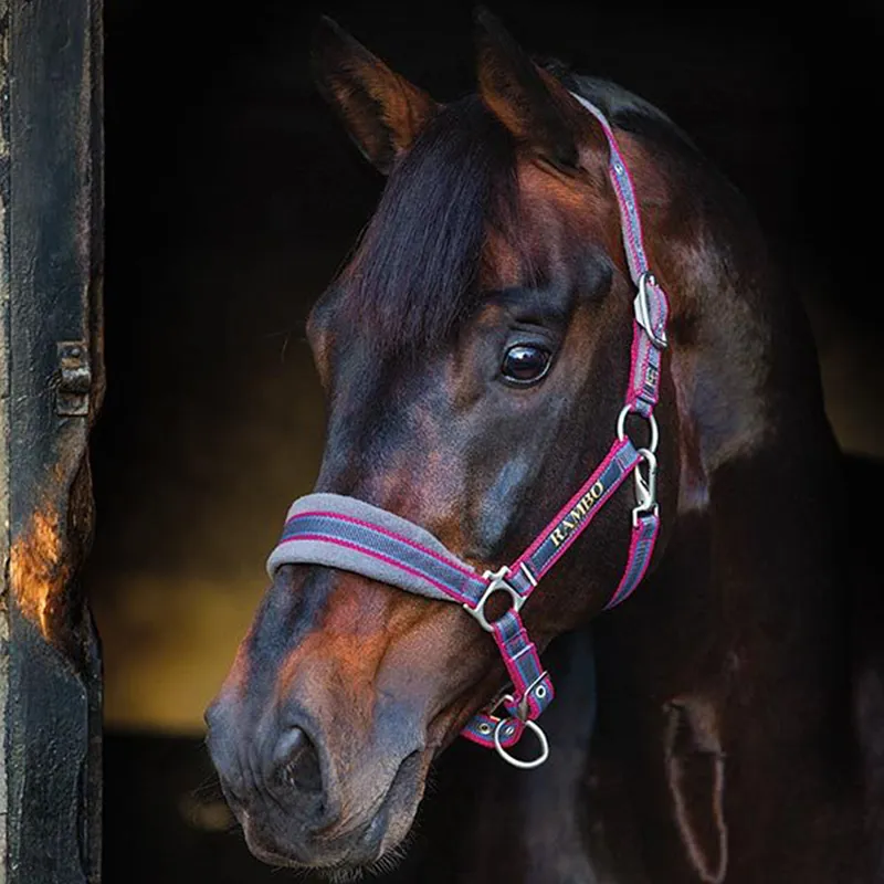 Horseware Rambo Padded Headcollar - Charcoal/Silver/Raspberry - Pony
