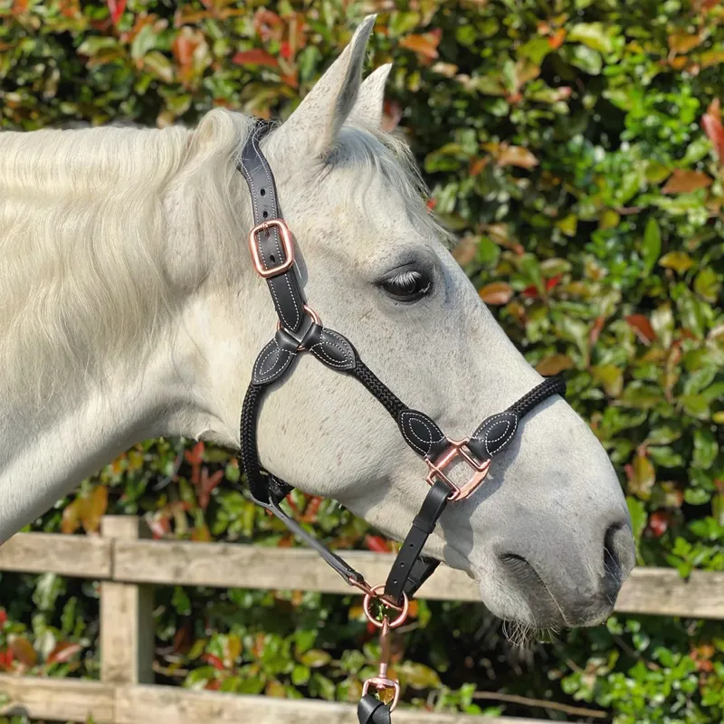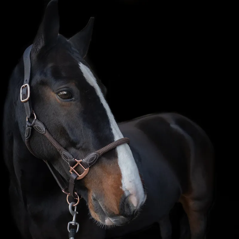 Cameo Anatomic Leather Headcollar - Black/Rose Gold