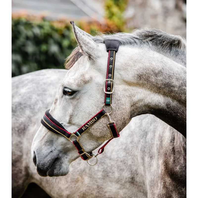 Horseware Rambo Padded Headcollar - Black/Pomegranate/White