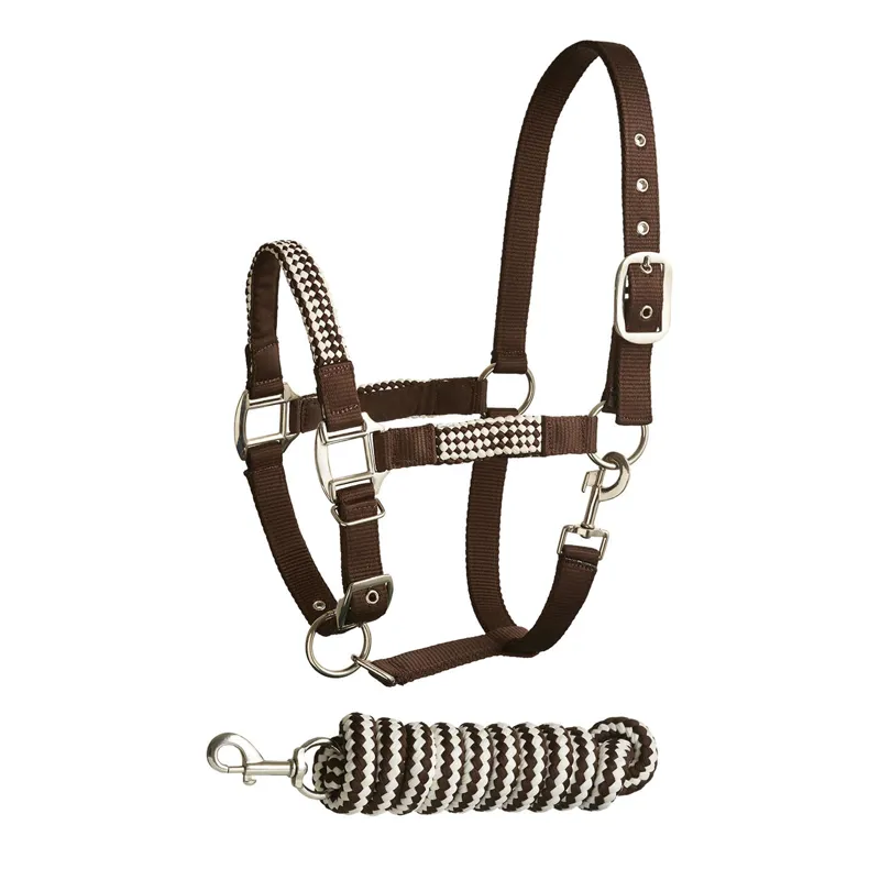 Bitz Soft Handle Two Tone Headcollar And Lead Rope Set - Brown/Cream